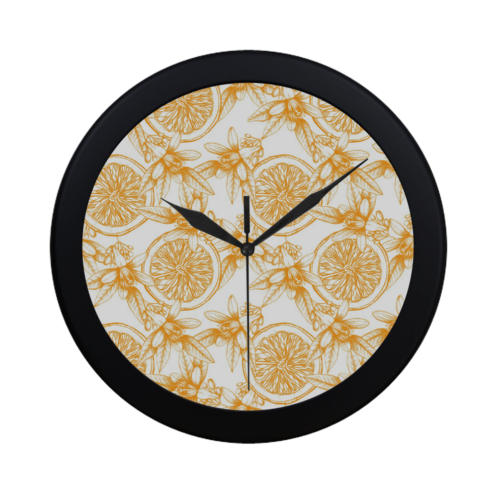 hand drawn orange fruit pattern Elegant Black Wall Clock