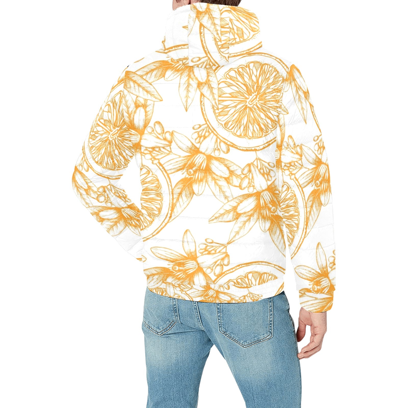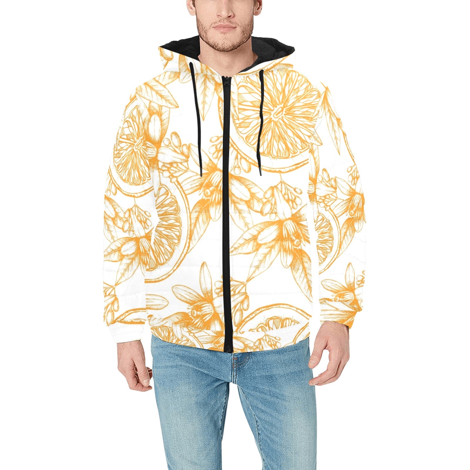 hand drawn orange fruit pattern Men's Padded Hooded Jacket