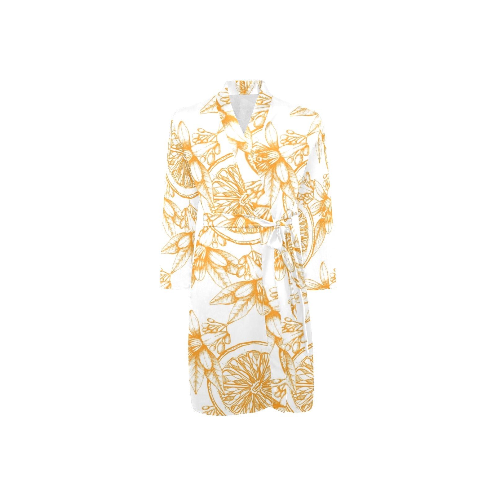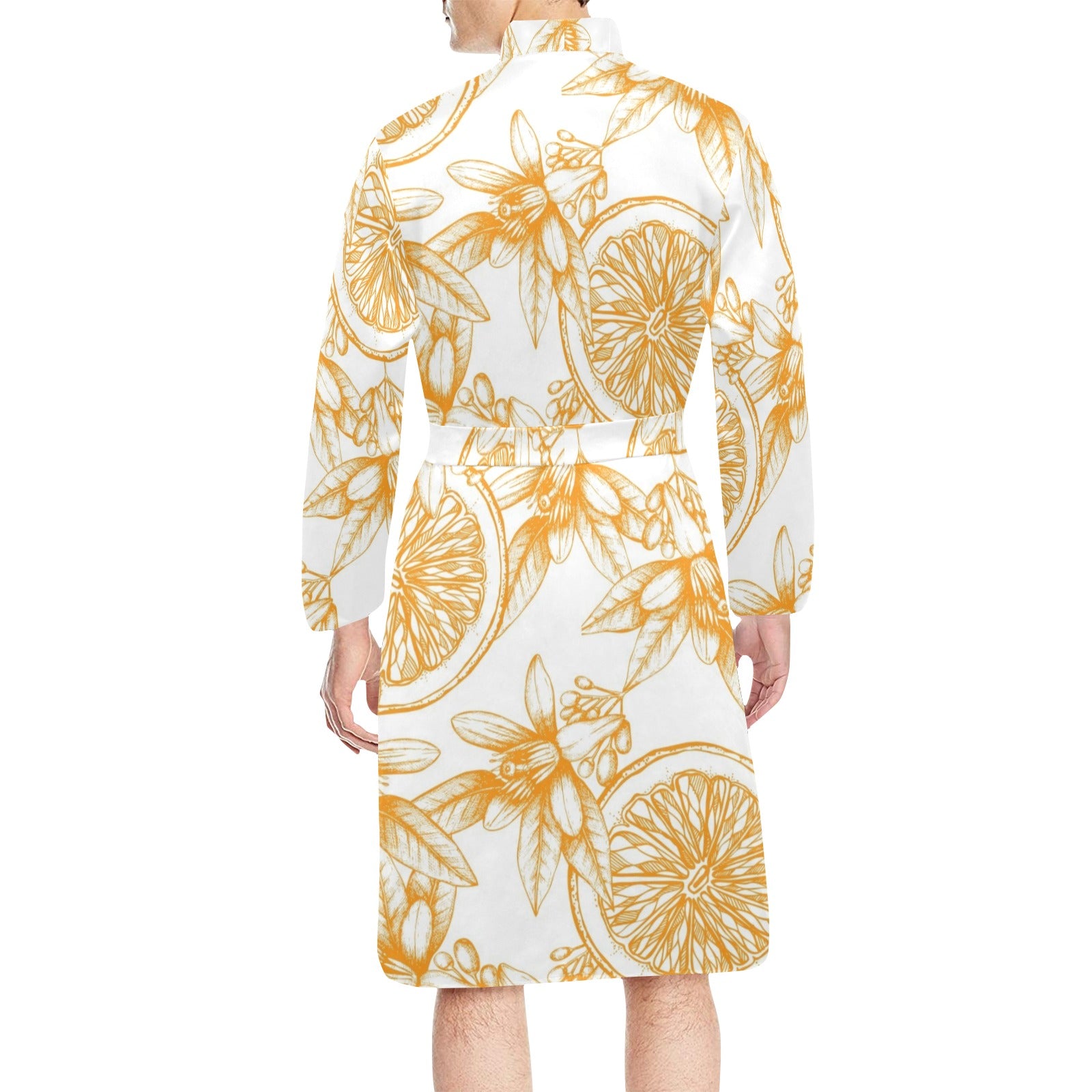 hand drawn orange fruit pattern Men's Long Sleeve Belted Night Robe