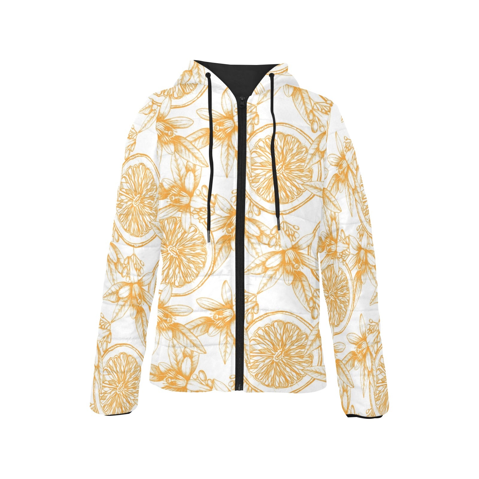 hand drawn orange fruit pattern Women's Padded Hooded Jacket