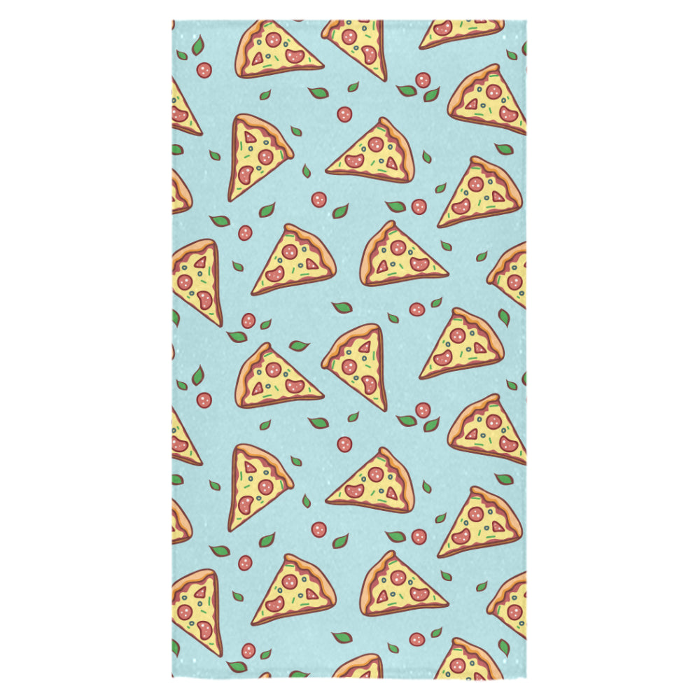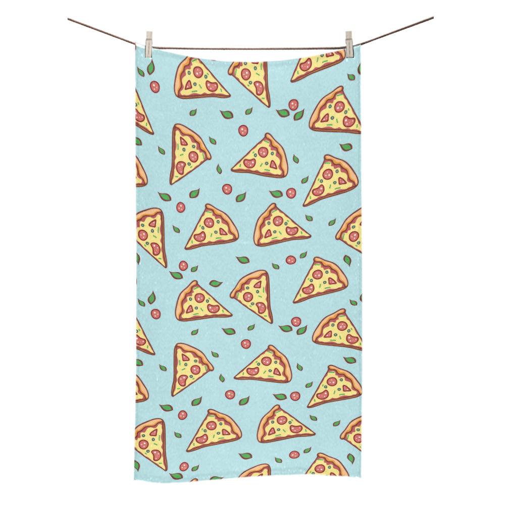 Hand drawn pizza blue background Bath Towel 30"x56" is a uniqued design and limited item. It made to order, hand printed, and sewn with love in our factory.