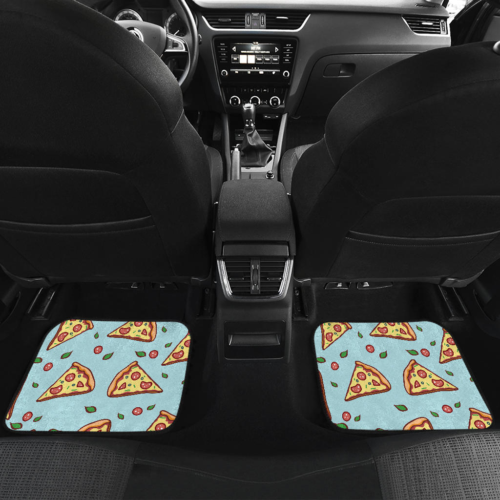 Hand drawn pizza blue background Front and Back Car Mats are uniqued design and limited item. It made to order, hand printed, and sewn with love in our factory.