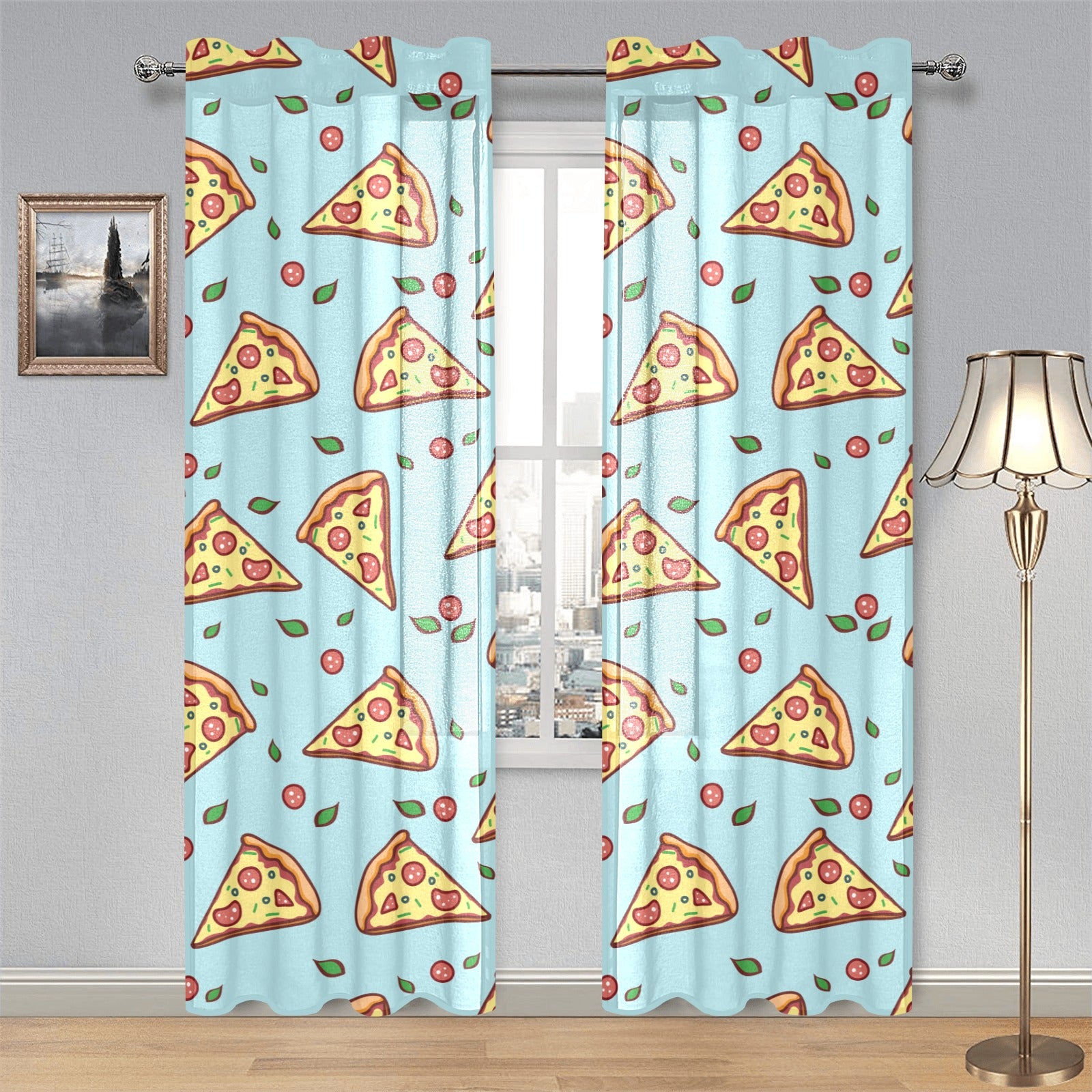 Hand drawn pizza blue background Gauze Curtain