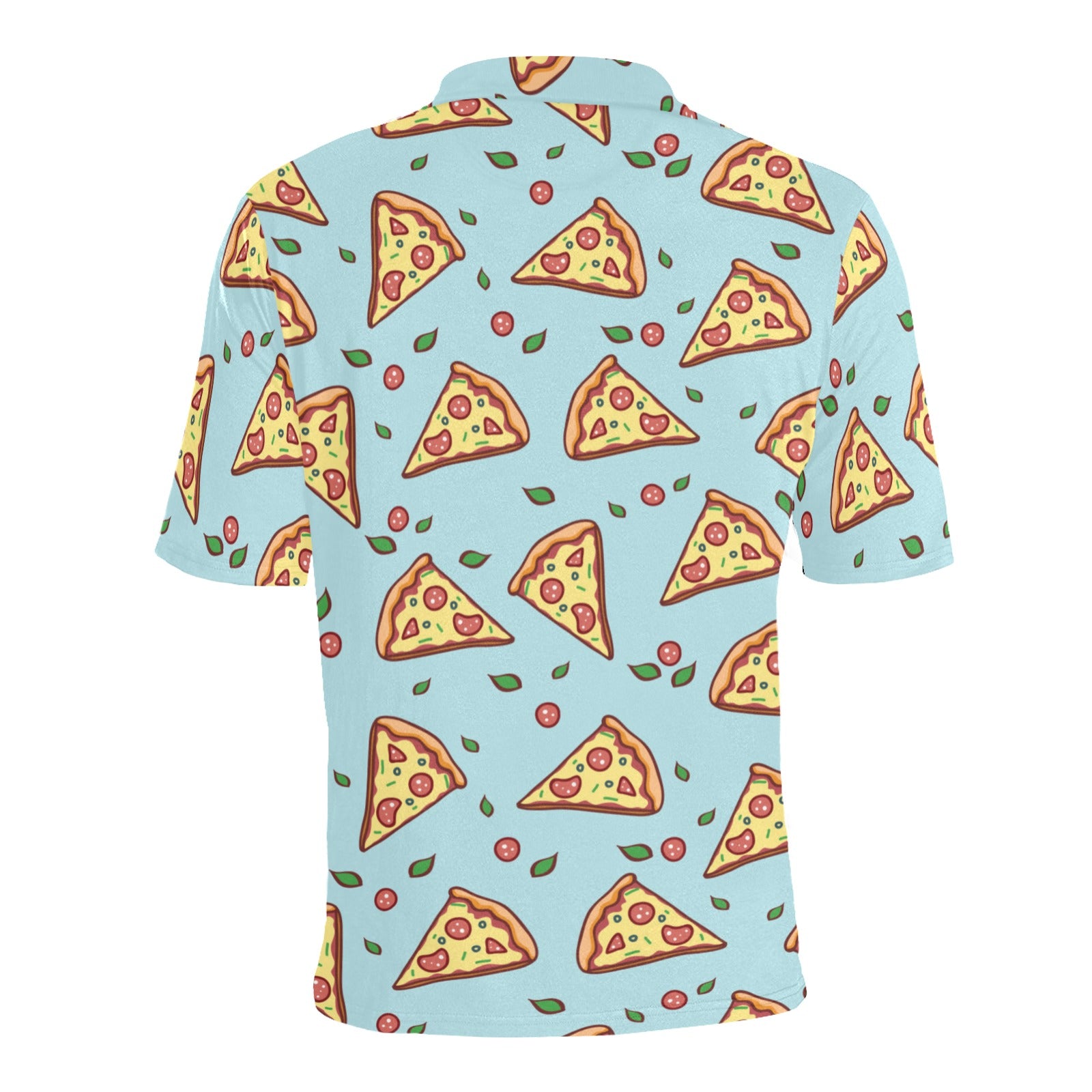Hand drawn pizza blue background Men's All Over Print Polo Shirt