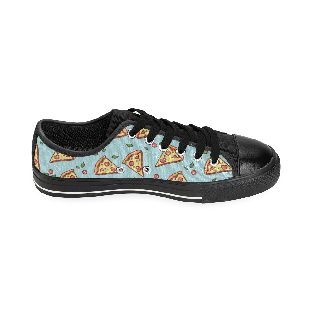 Hand drawn pizza blue background Men's Low Top Canvas Shoes Black
