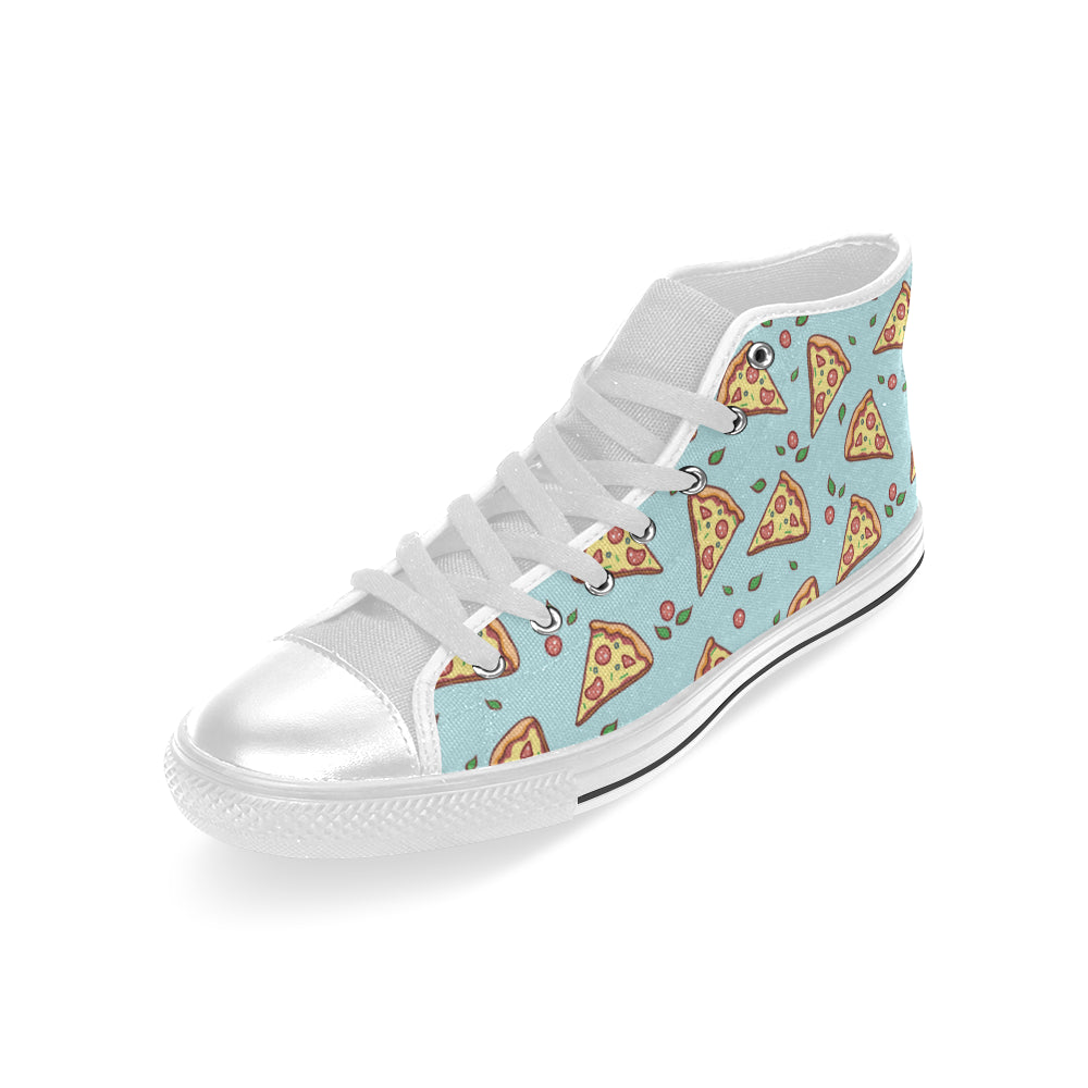 Hand drawn pizza blue background Men's High Top Canvas Shoes White