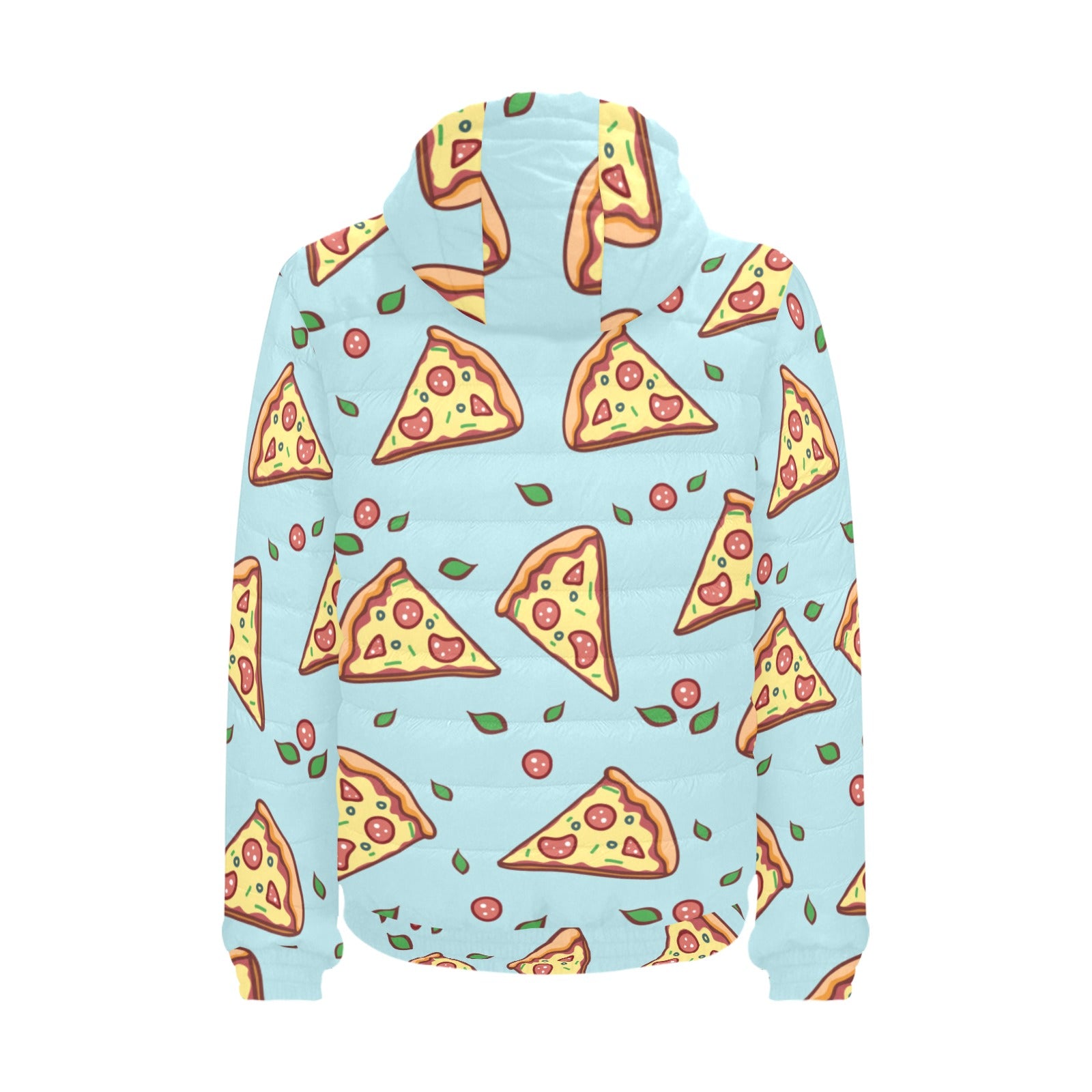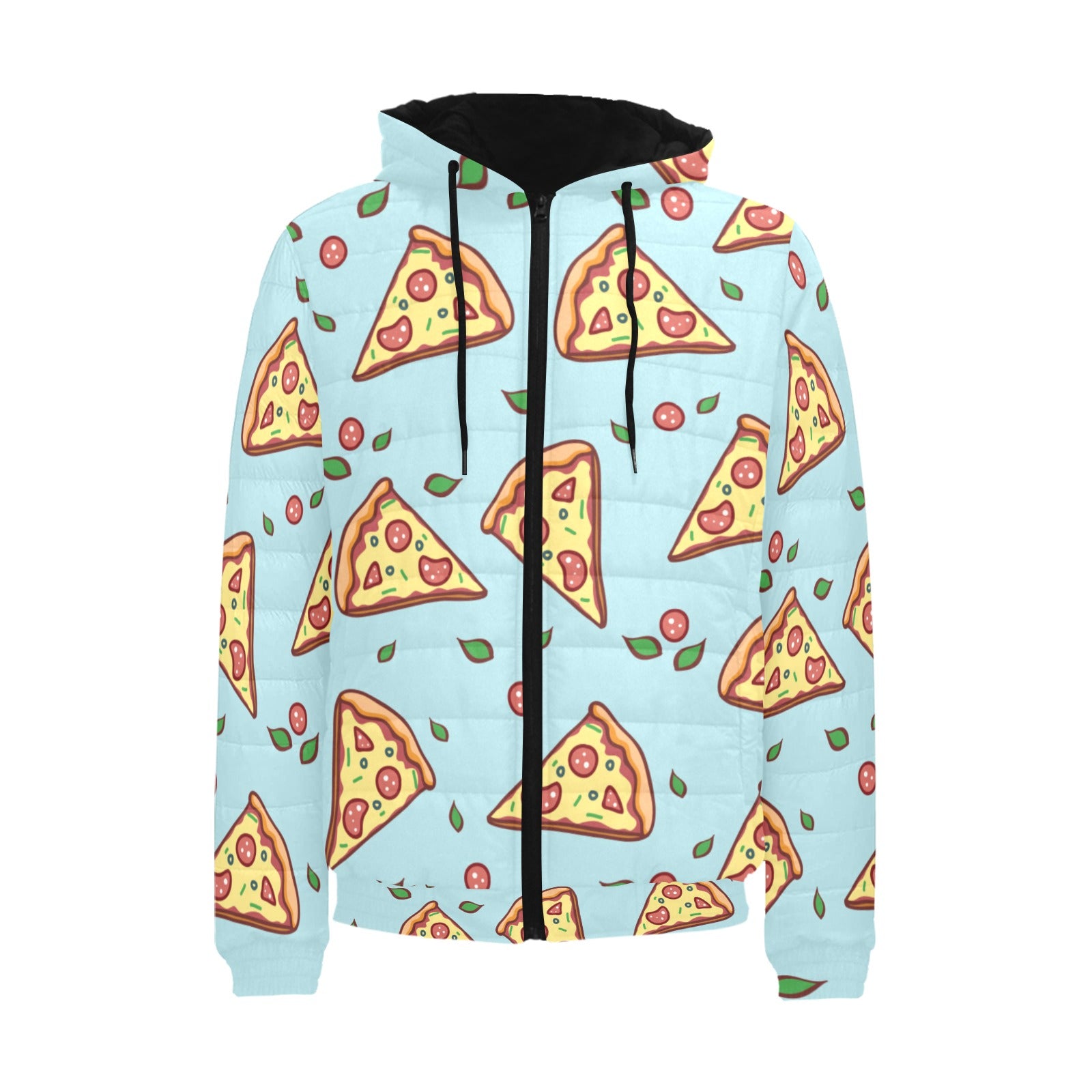 Hand drawn pizza blue background Men's Padded Hooded Jacket