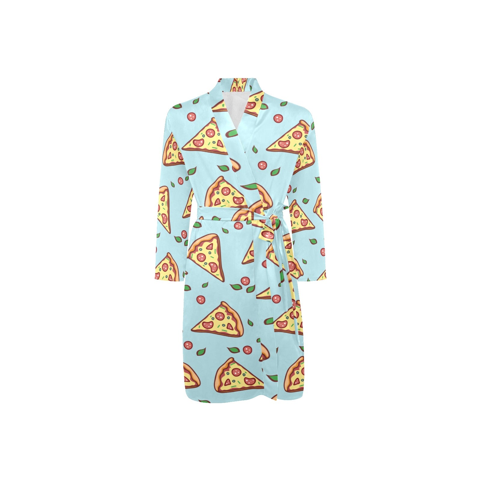 Hand drawn pizza blue background Men's Long Sleeve Belted Night Robe