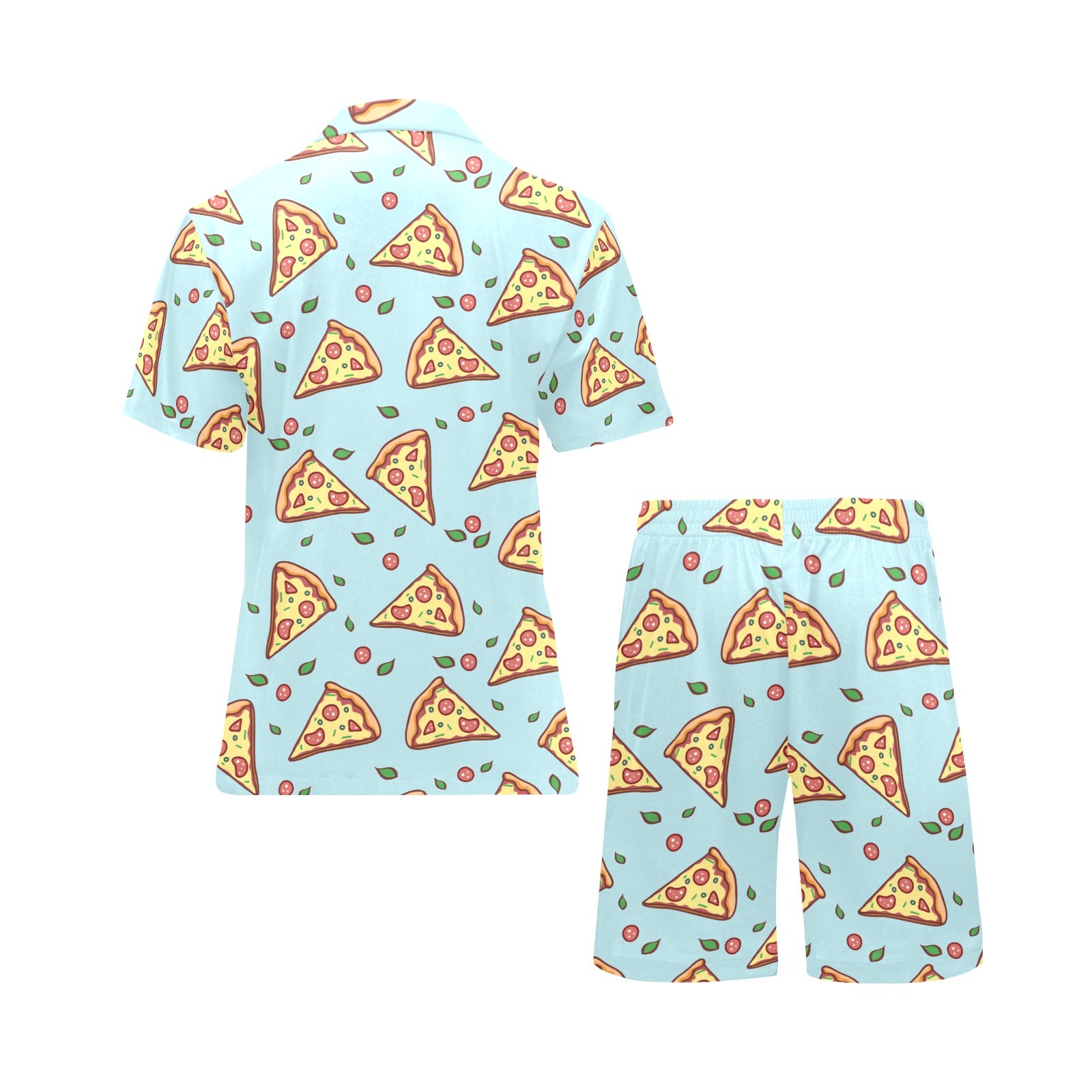 Hand drawn pizza blue background Men's V-Neck Short Pajama Set