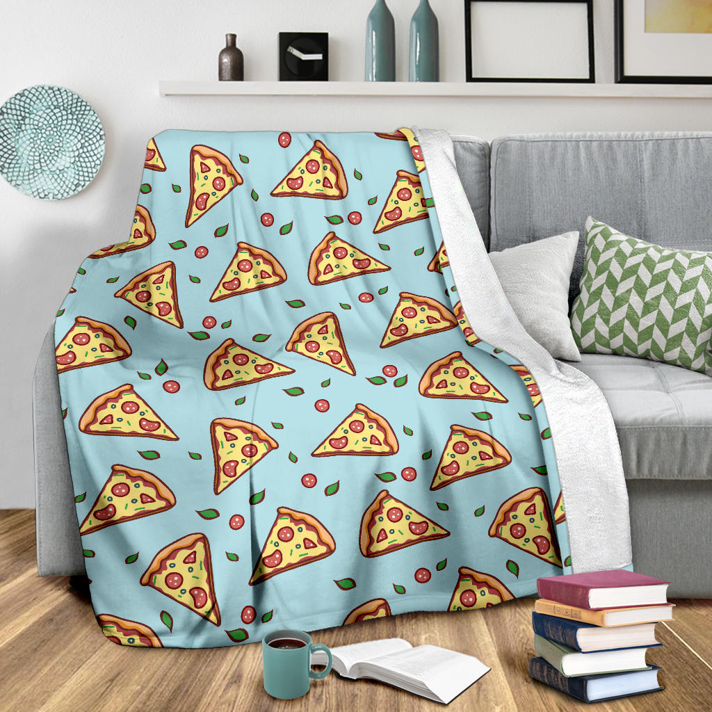 Hand drawn pizza blue background Premium Blanket is a uniqued design and limited item. It made to order, hand printed, and sewn with love in our factory.