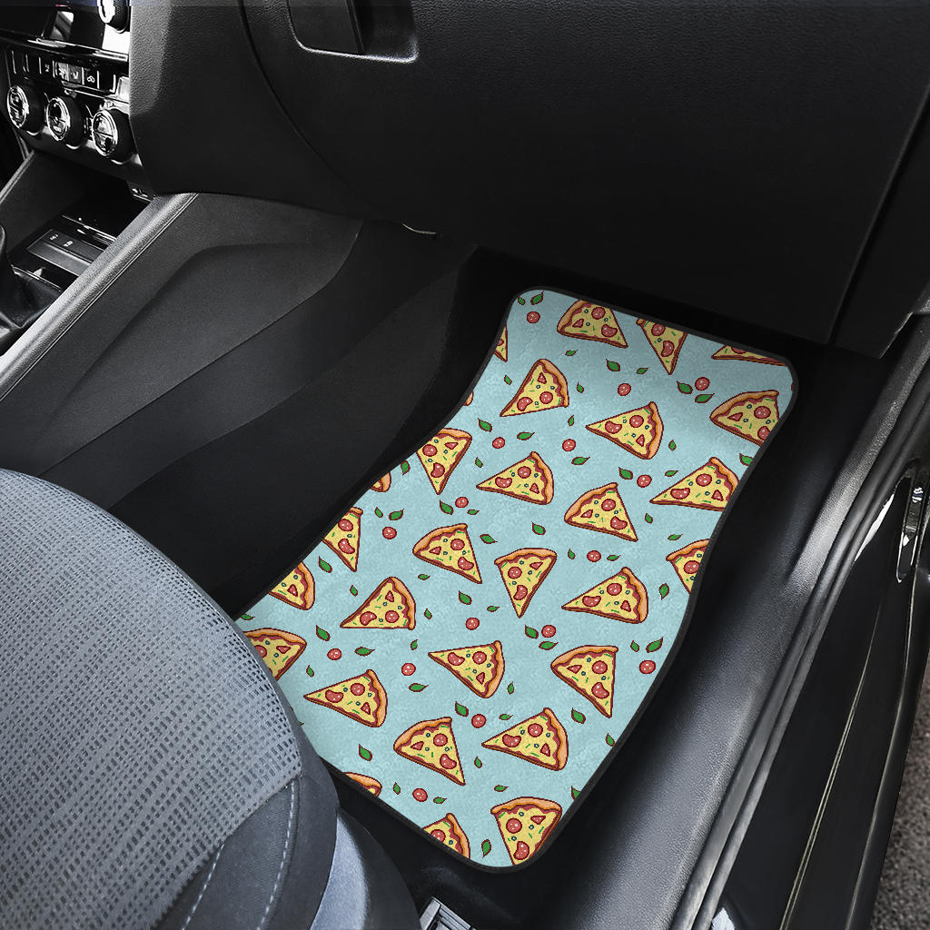Hand drawn pizza blue background Front Car Mats are uniqued design and limited item. It made to order, hand printed, and sewn with love in our factory.