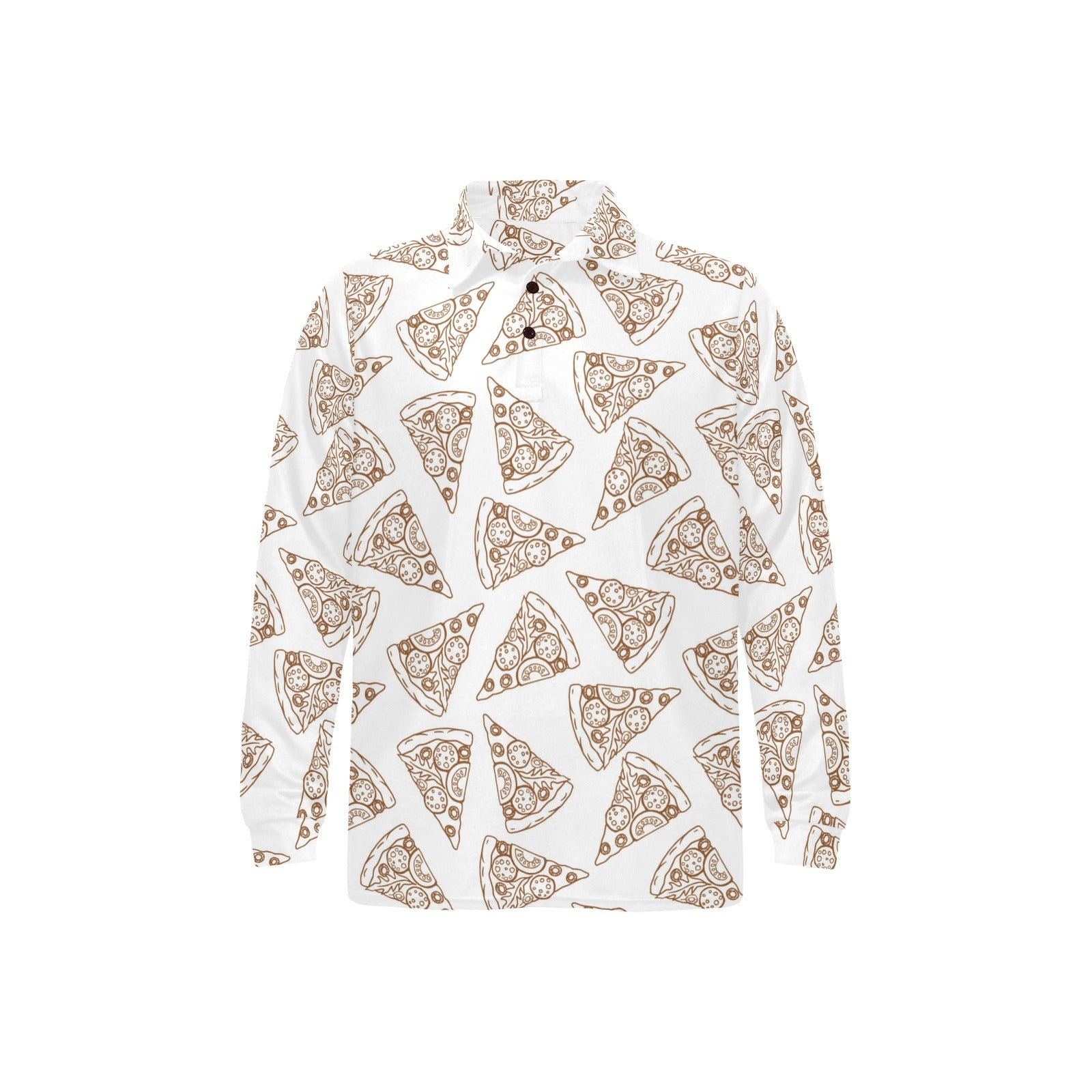 Hand drawn pizza pattern Men's Long Sleeve Polo Shirt