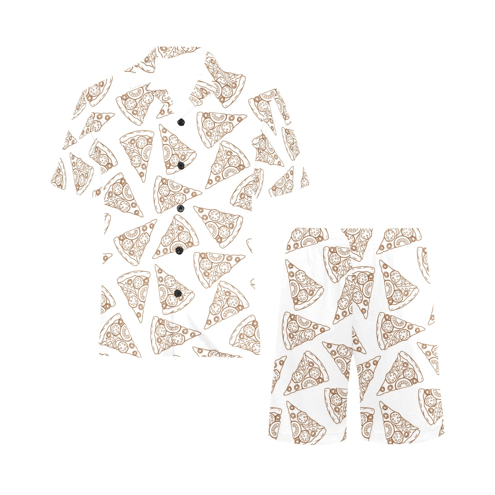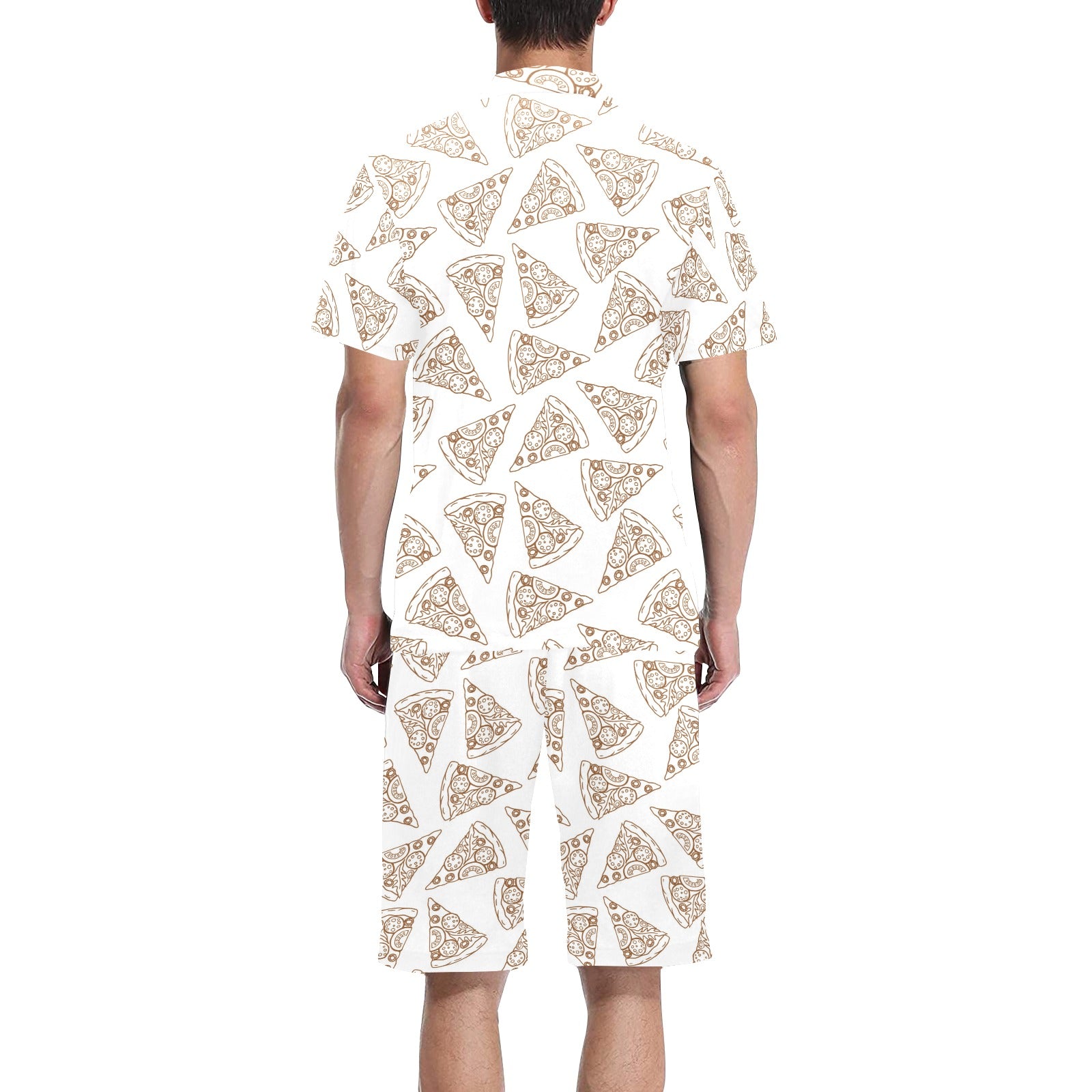 Hand drawn pizza pattern Men's V-Neck Short Pajama Set