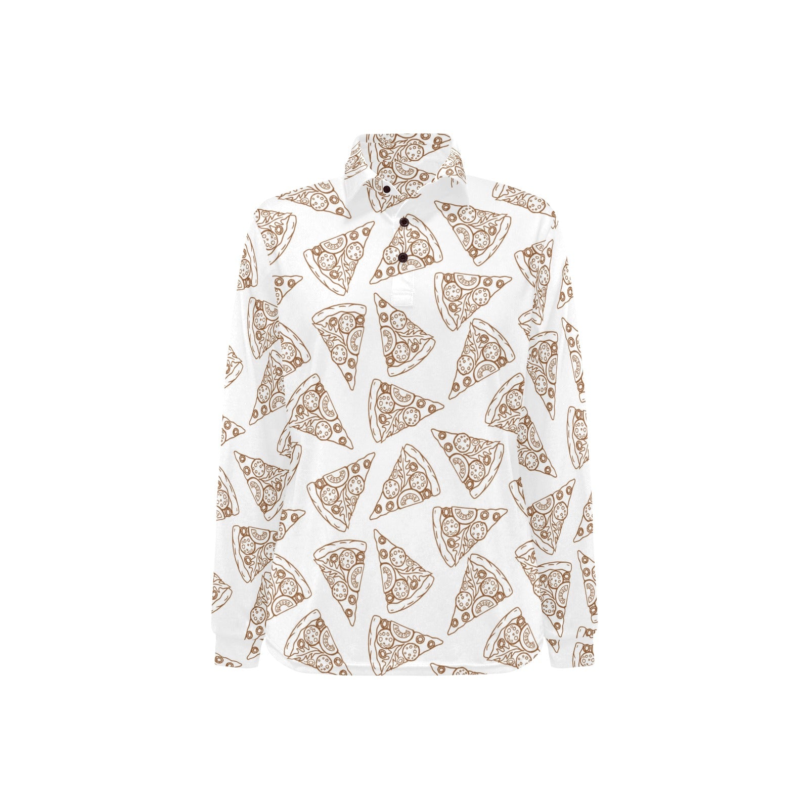 Hand drawn pizza pattern Women's Long Sleeve Polo Shirt