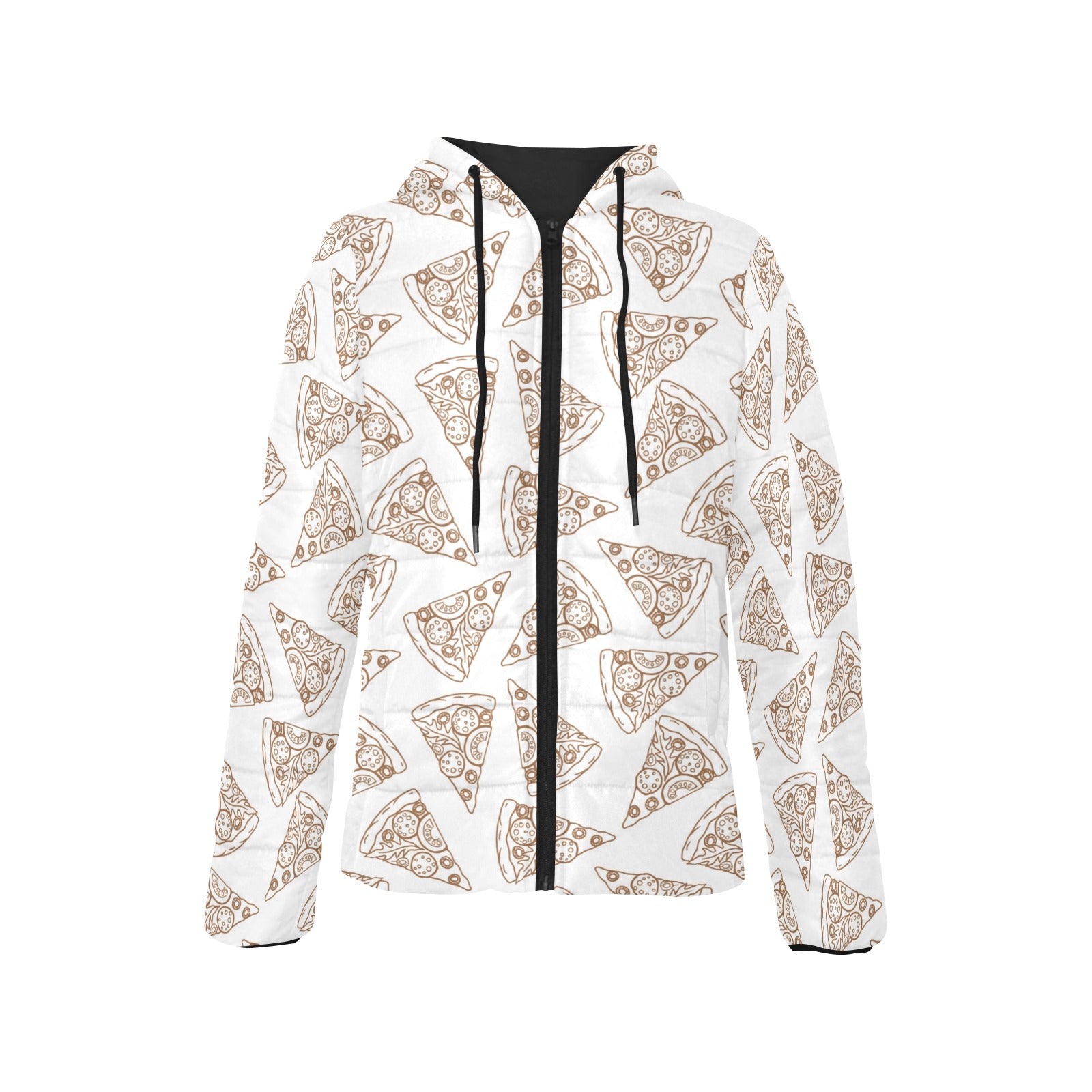 Hand drawn pizza pattern Women's Padded Hooded Jacket