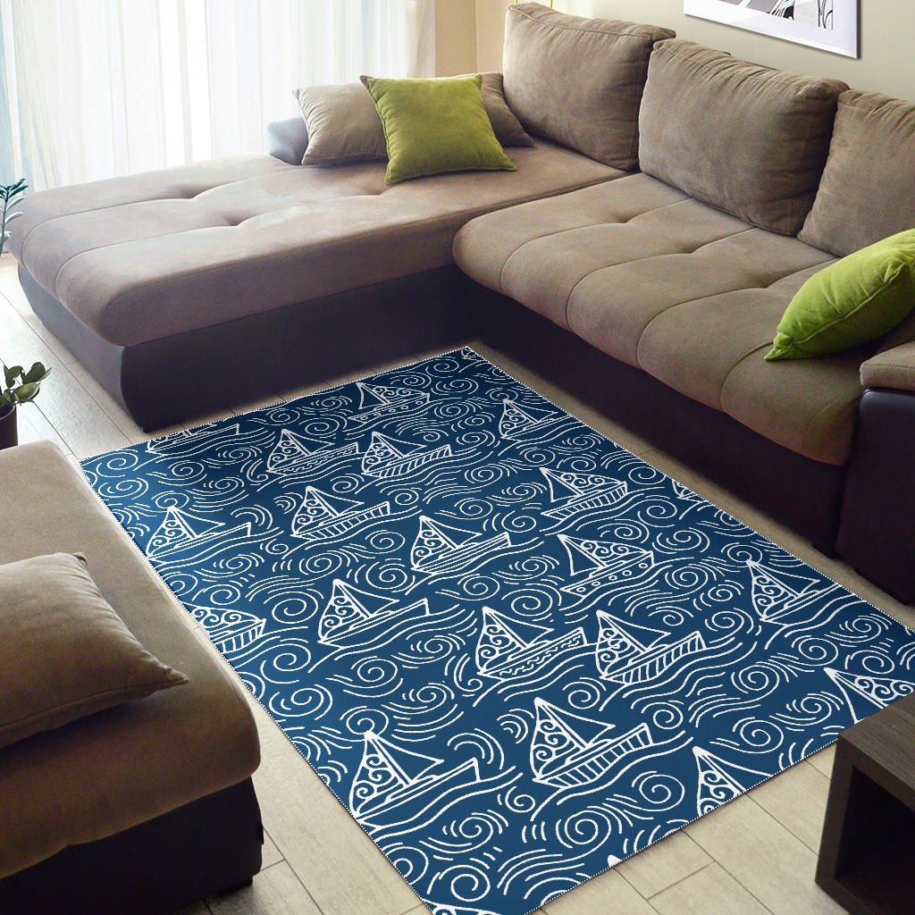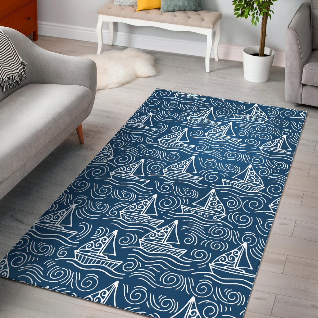 Hand drawn sailboat pattern Area Rug is a uniqued design and limited item. It made to order, hand printed, and sewn with love in our factory.