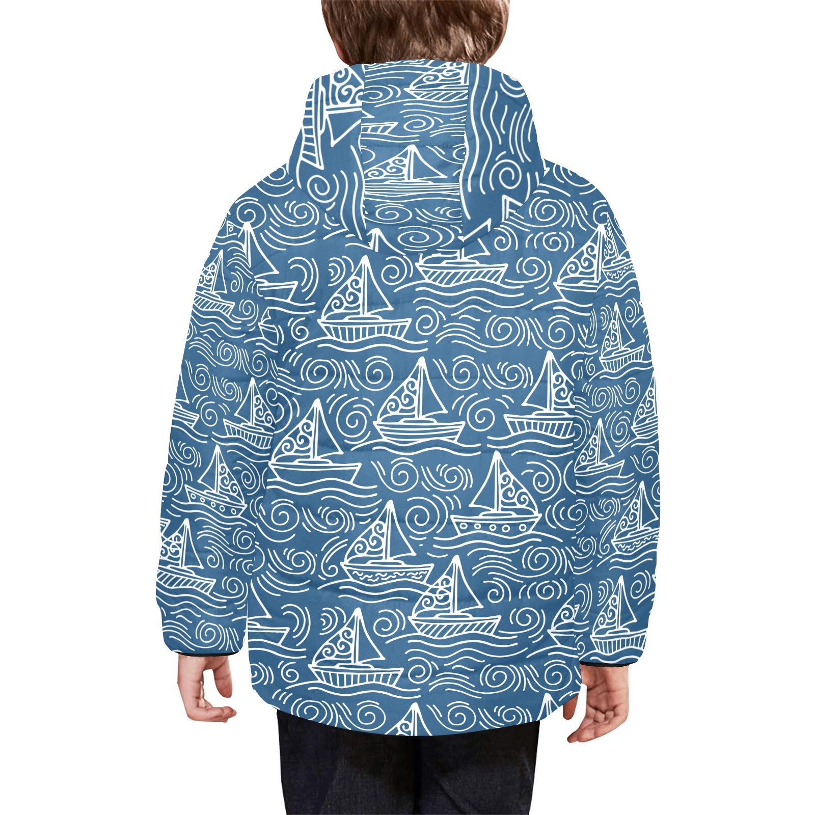 Hand drawn sailboat pattern Kids' Boys' Girls' Padded Hooded Jacket