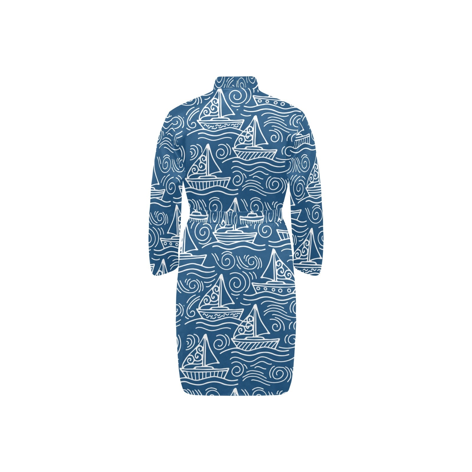 Hand drawn sailboat pattern Men's Long Sleeve Belted Night Robe