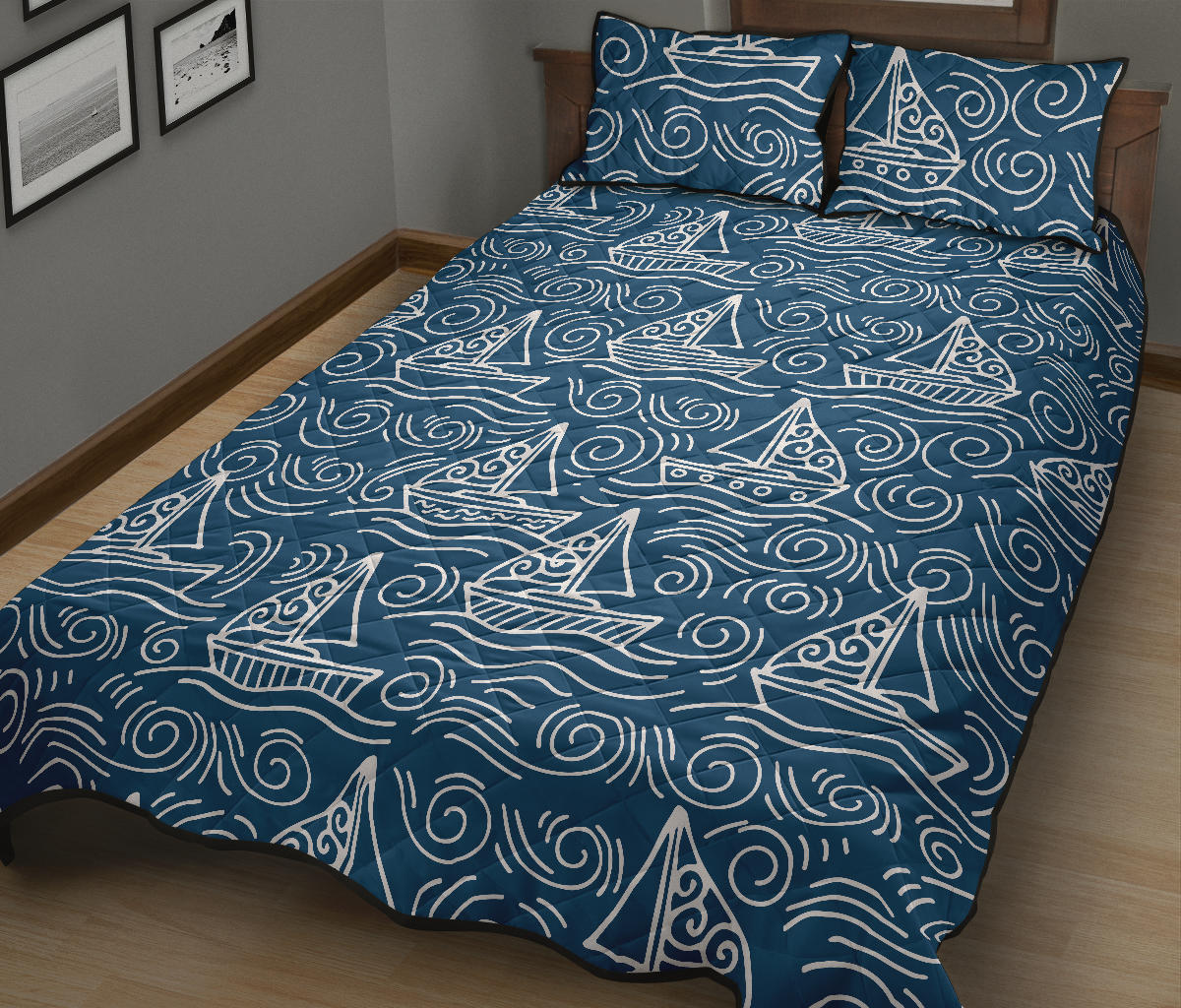 Hand drawn sailboat pattern Quilt Bed Set