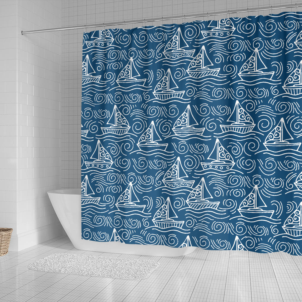 Hand Drawn Sailboat Pattern Shower Curtain Fulfilled In US