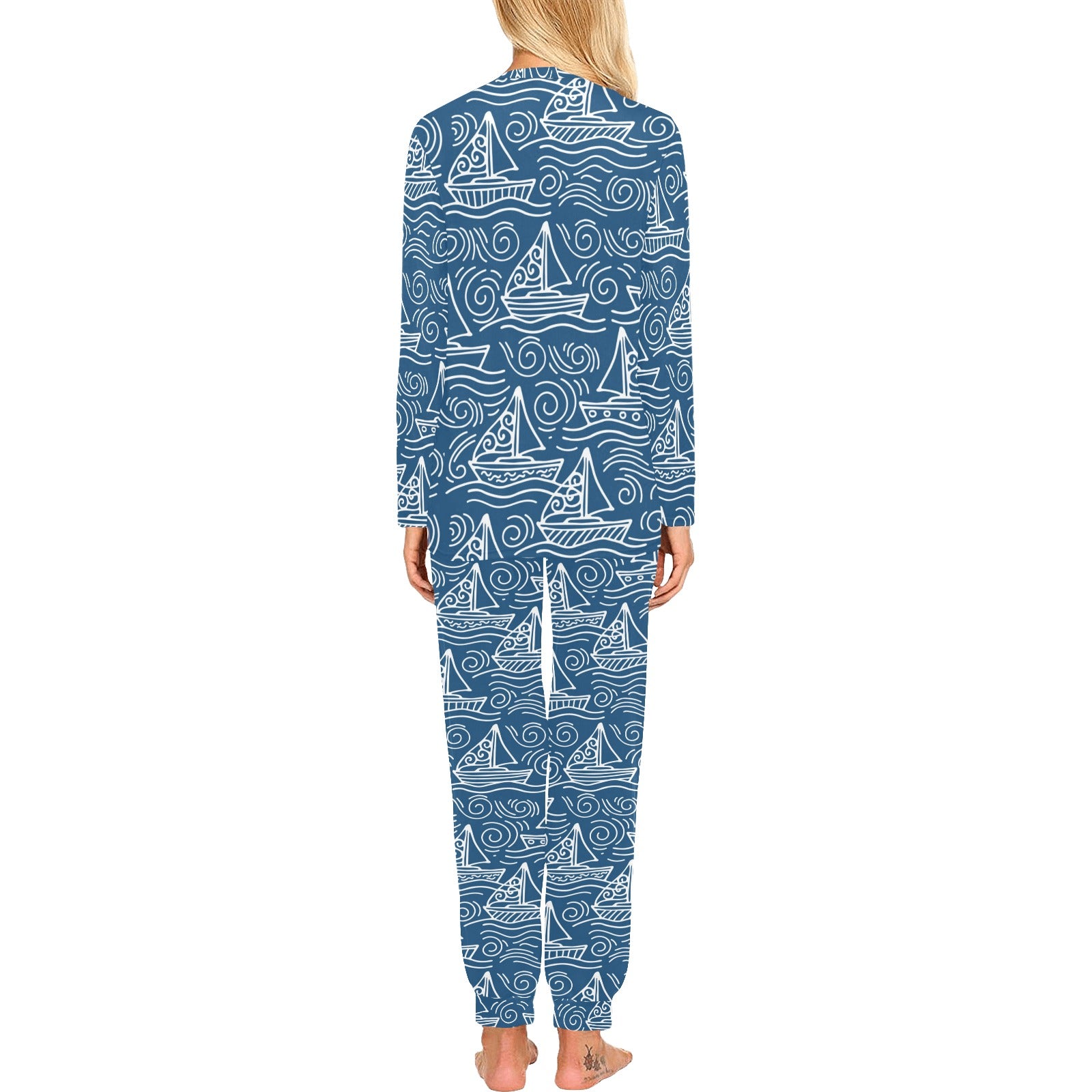 Hand drawn sailboat pattern Women's All Over Print Pajama Set