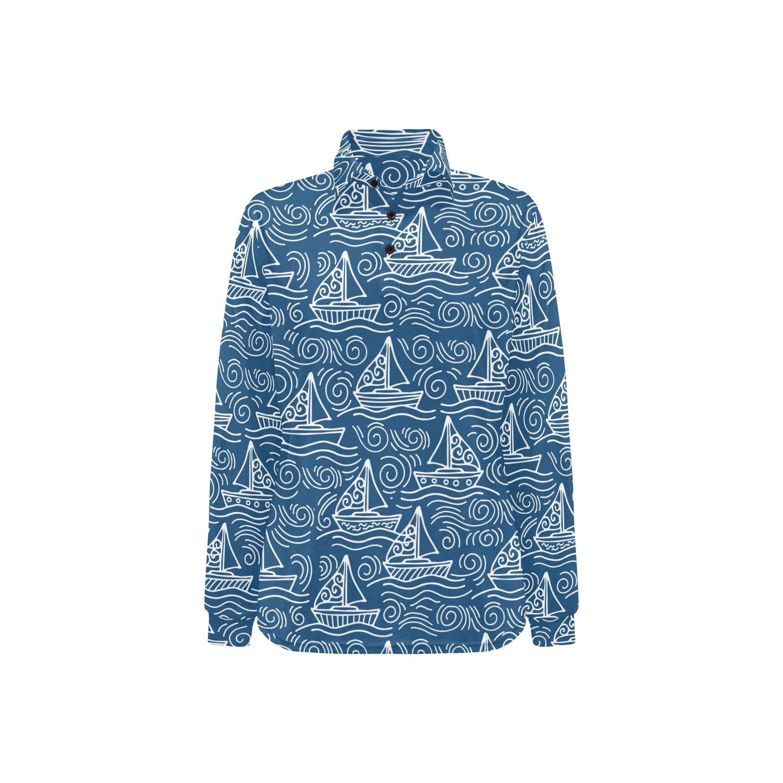Hand drawn sailboat pattern Women's Long Sleeve Polo Shirt