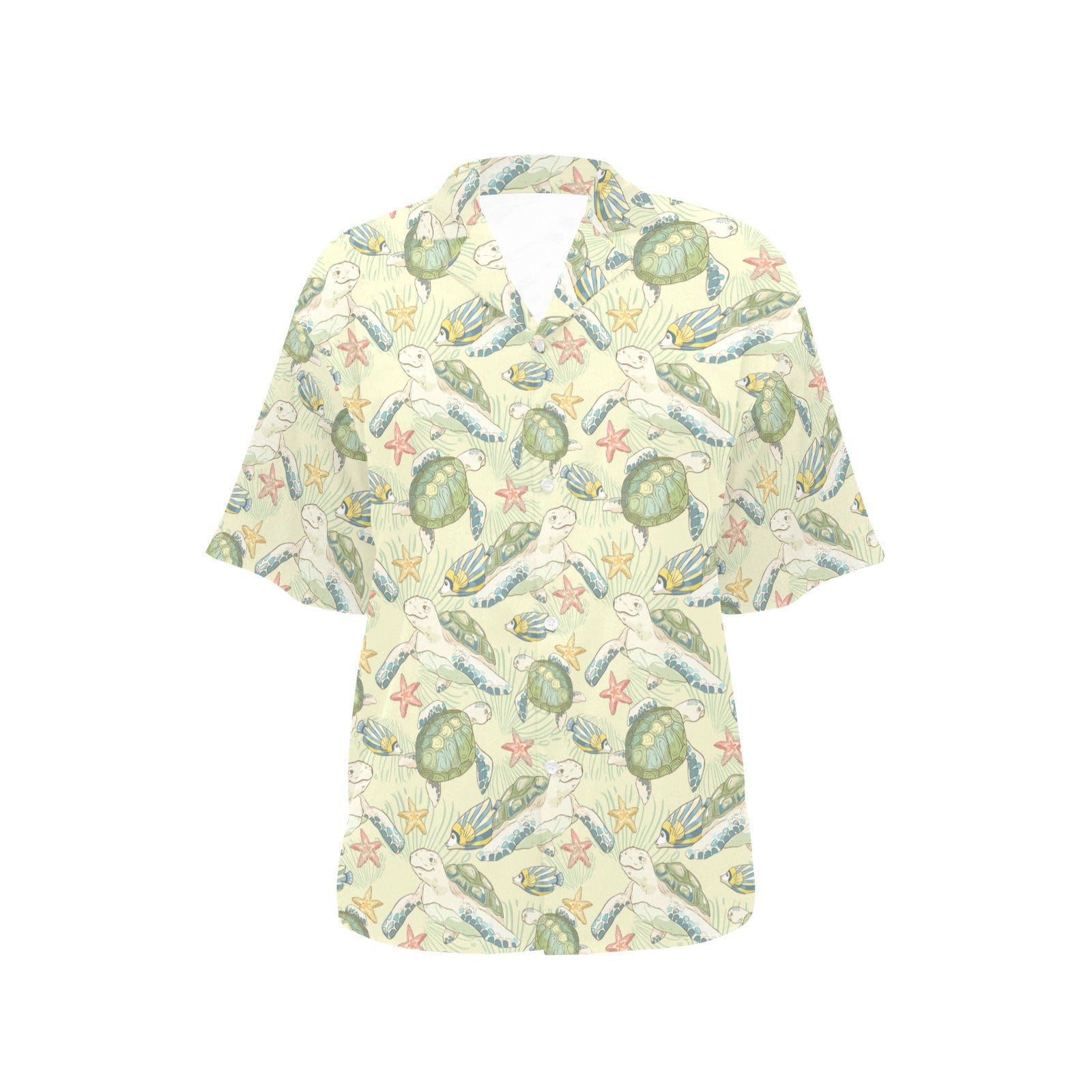 Hand drawn sea turtle fish pattern Women's All Over Print Hawaiian Shirt