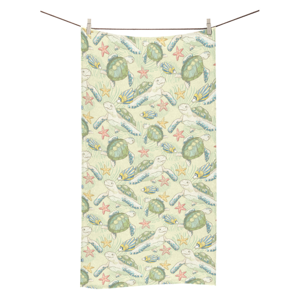 Hand drawn sea turtle fish pattern Bath Towel 30"x56" is a uniqued design and limited item. It made to order, hand printed, and sewn with love in our factory.