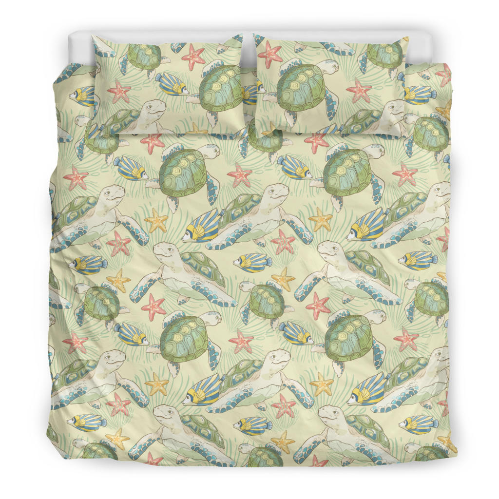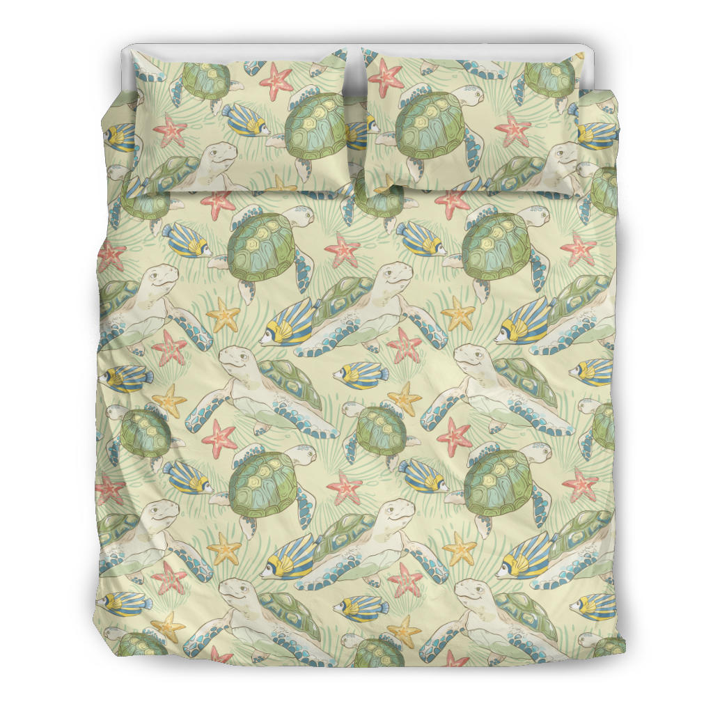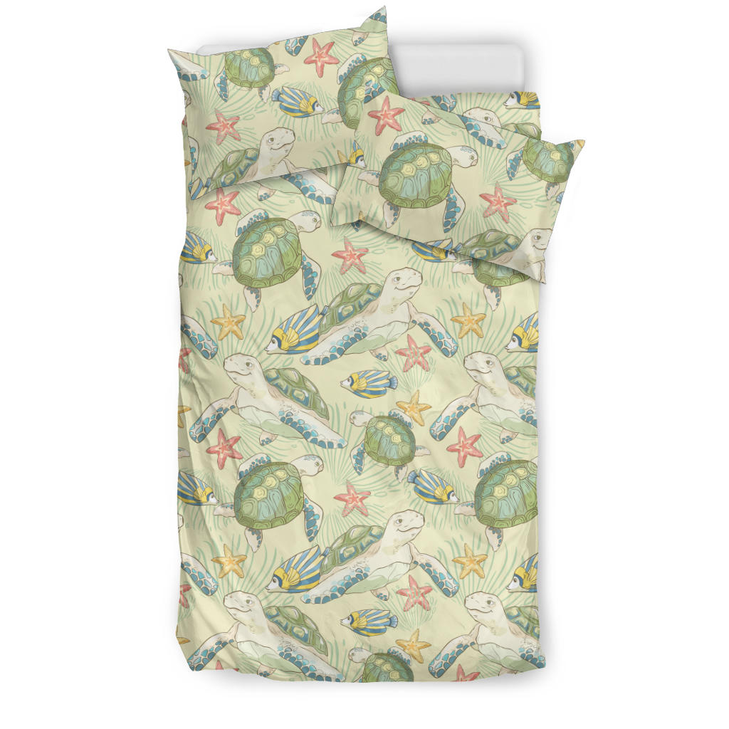 Hand Drawn Sea Turtle Fish Pattern Bedding Set