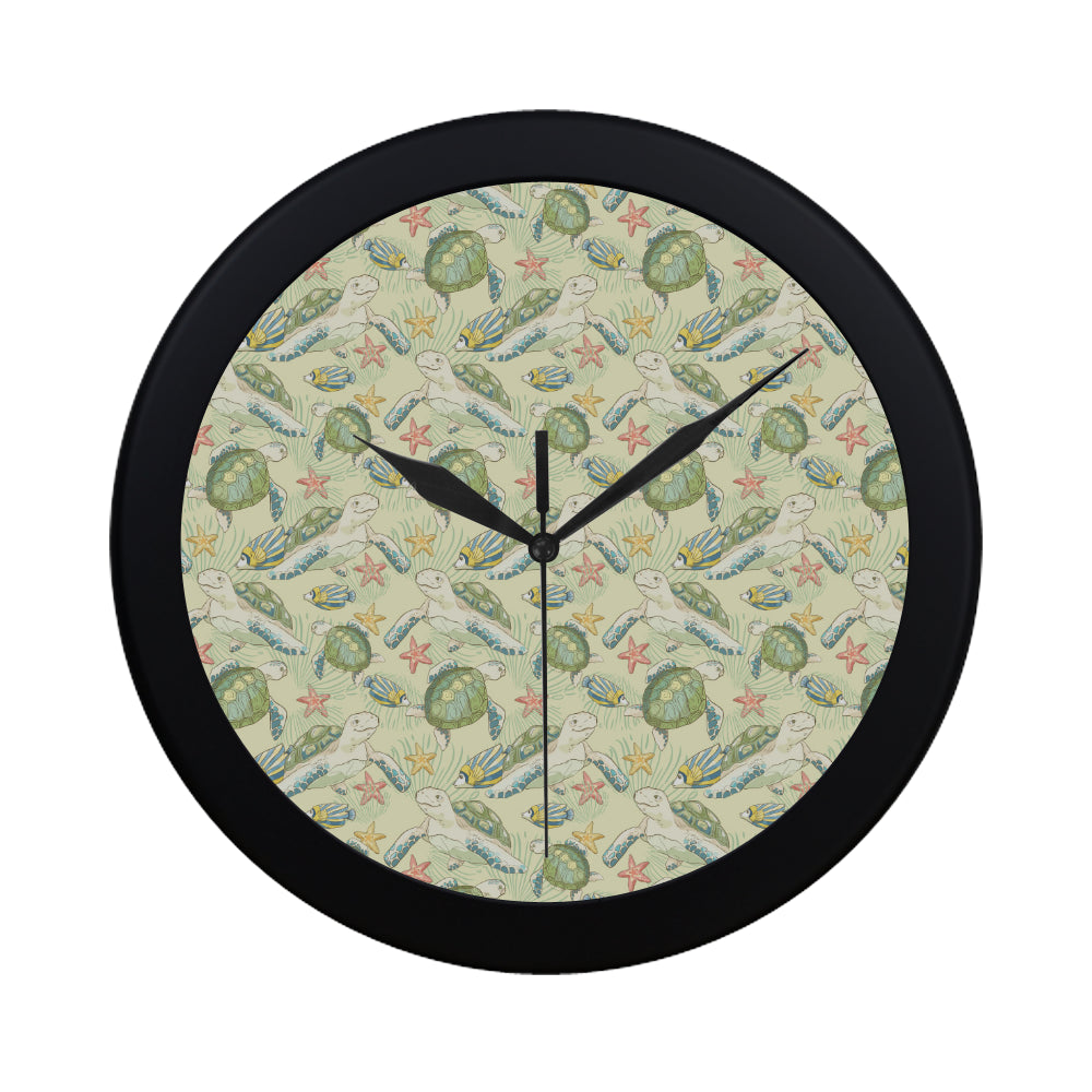Hand drawn sea turtle fish pattern Elegant Black Wall Clock