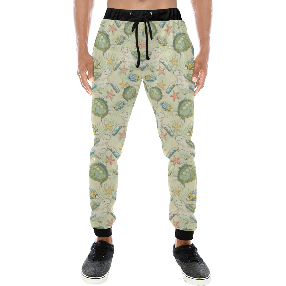 Hand drawn sea turtle fish pattern Unisex Casual Sweatpants