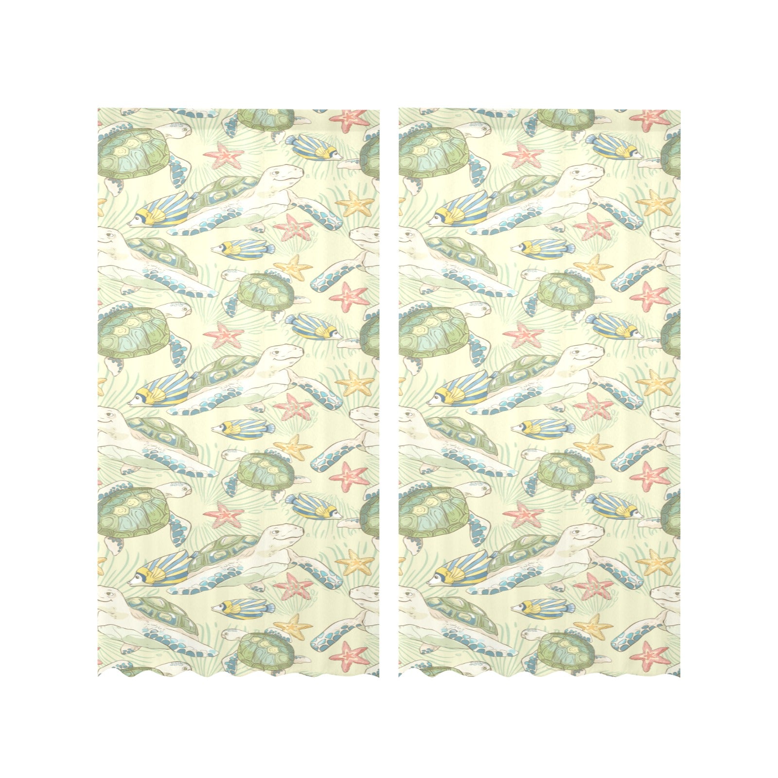 Hand drawn sea turtle fish pattern Gauze Curtain
