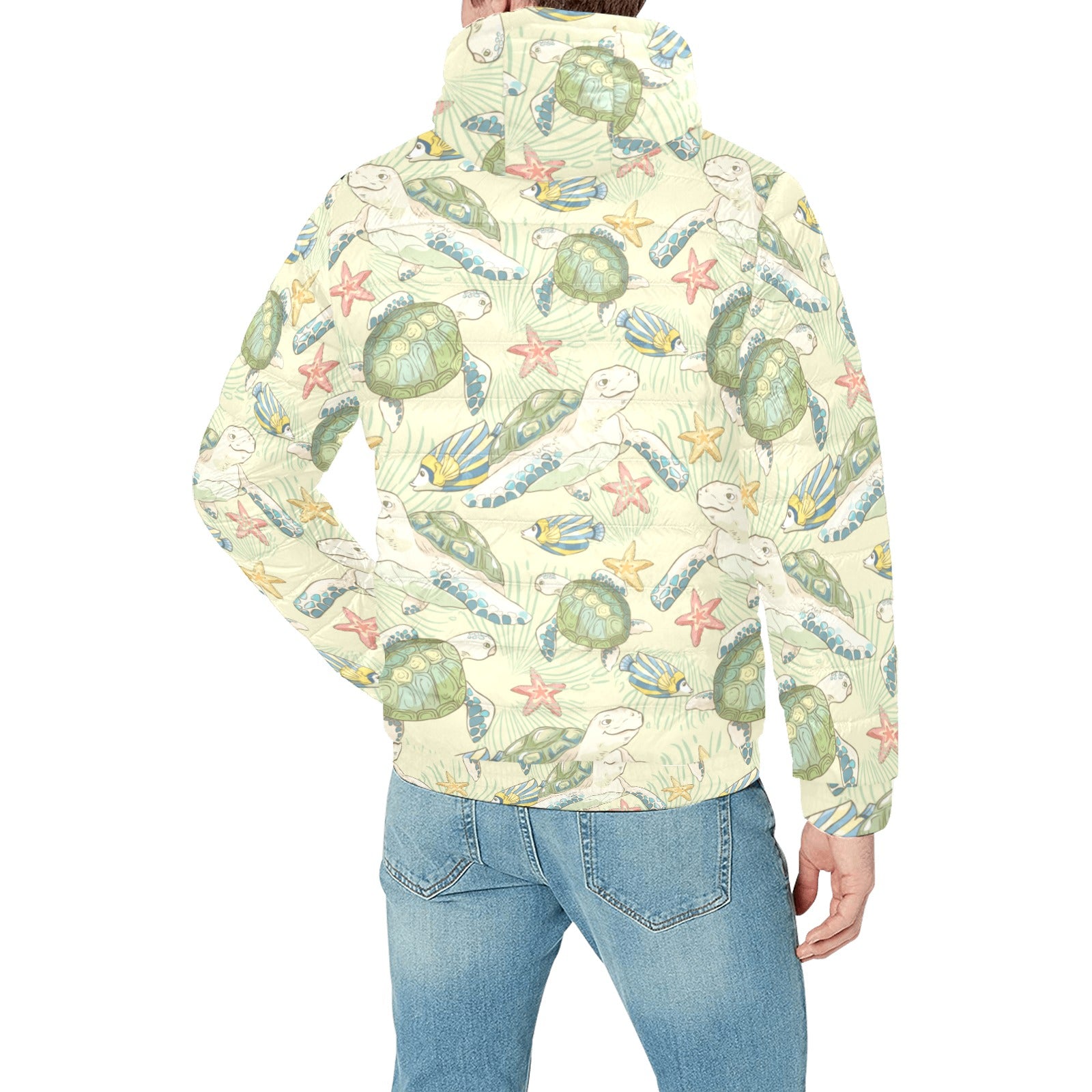 Hand drawn sea turtle fish pattern Men's Padded Hooded Jacket
