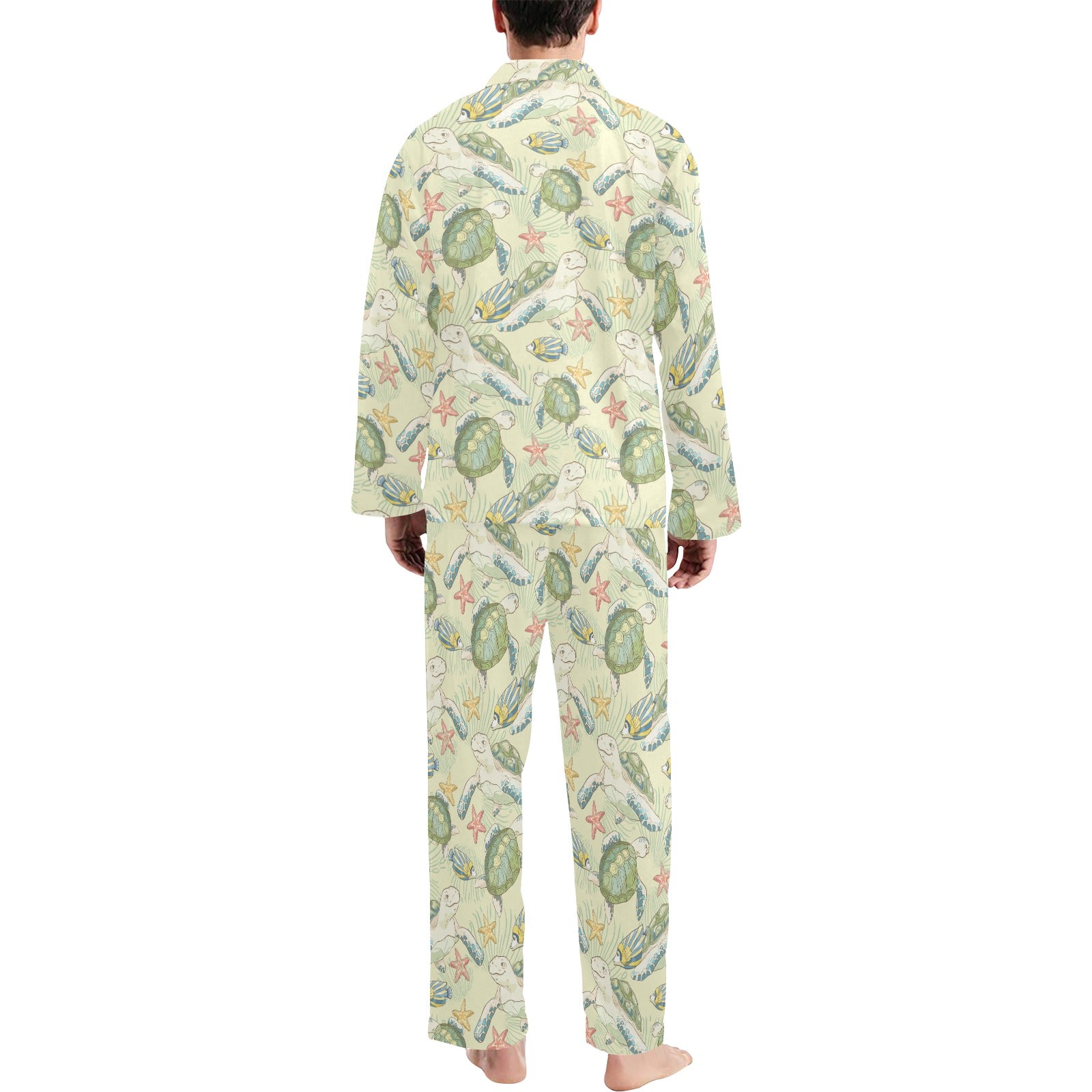 Hand drawn sea turtle fish pattern Men's Long Pajama Set