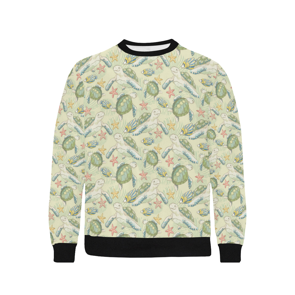 Hand drawn sea turtle fish pattern Men's Crew Neck Sweatshirt