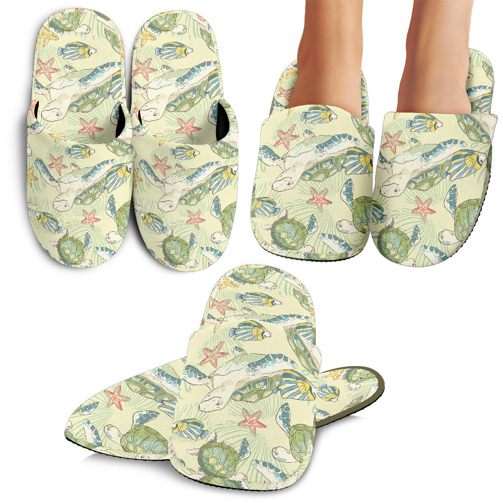 Hand Drawn Sea Turtle Fish Pattern Slippers