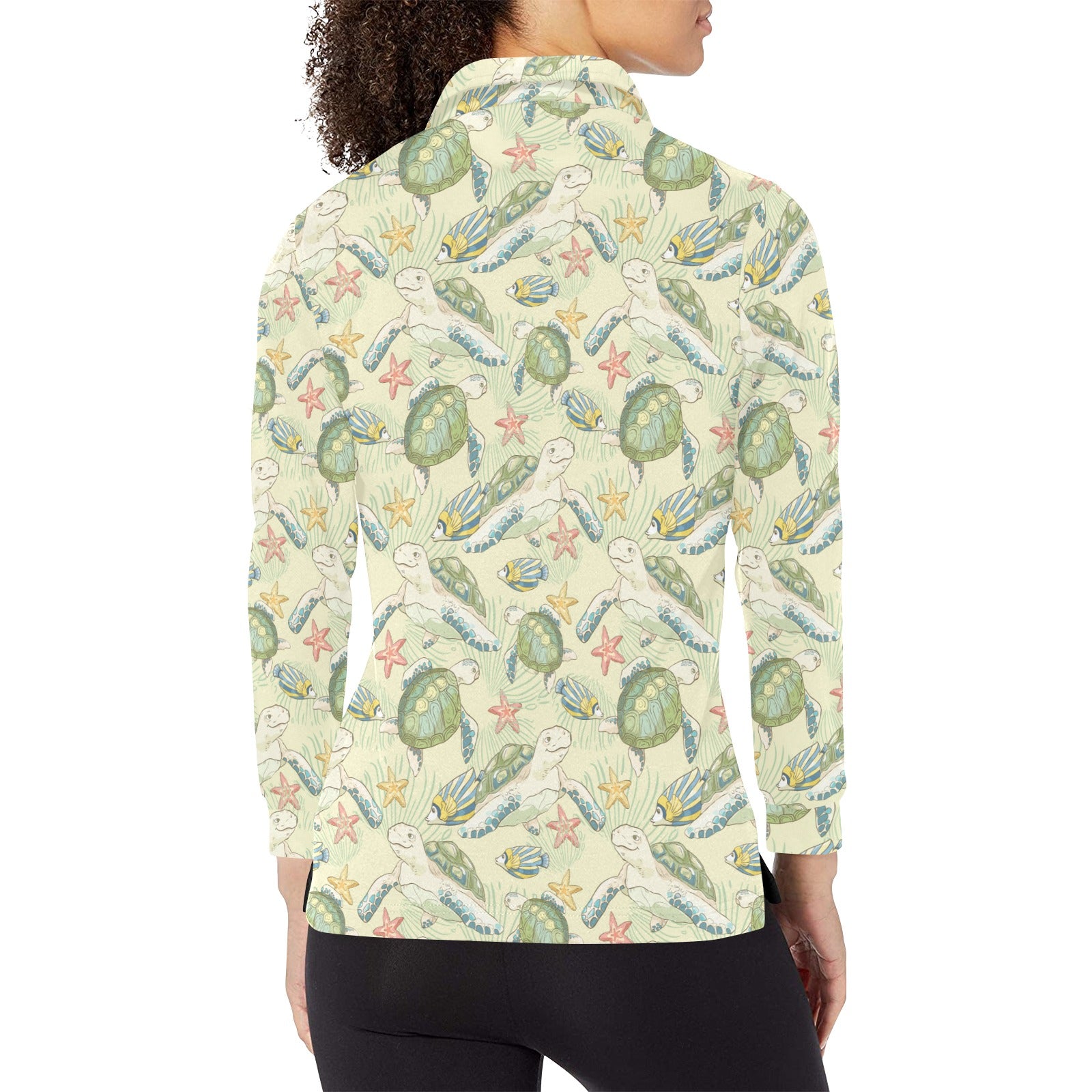 Hand drawn sea turtle fish pattern Women's Long Sleeve Polo Shirt