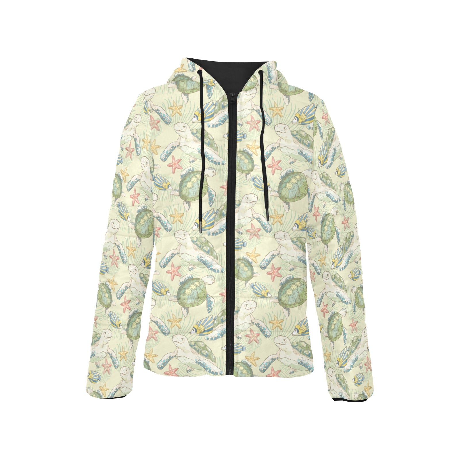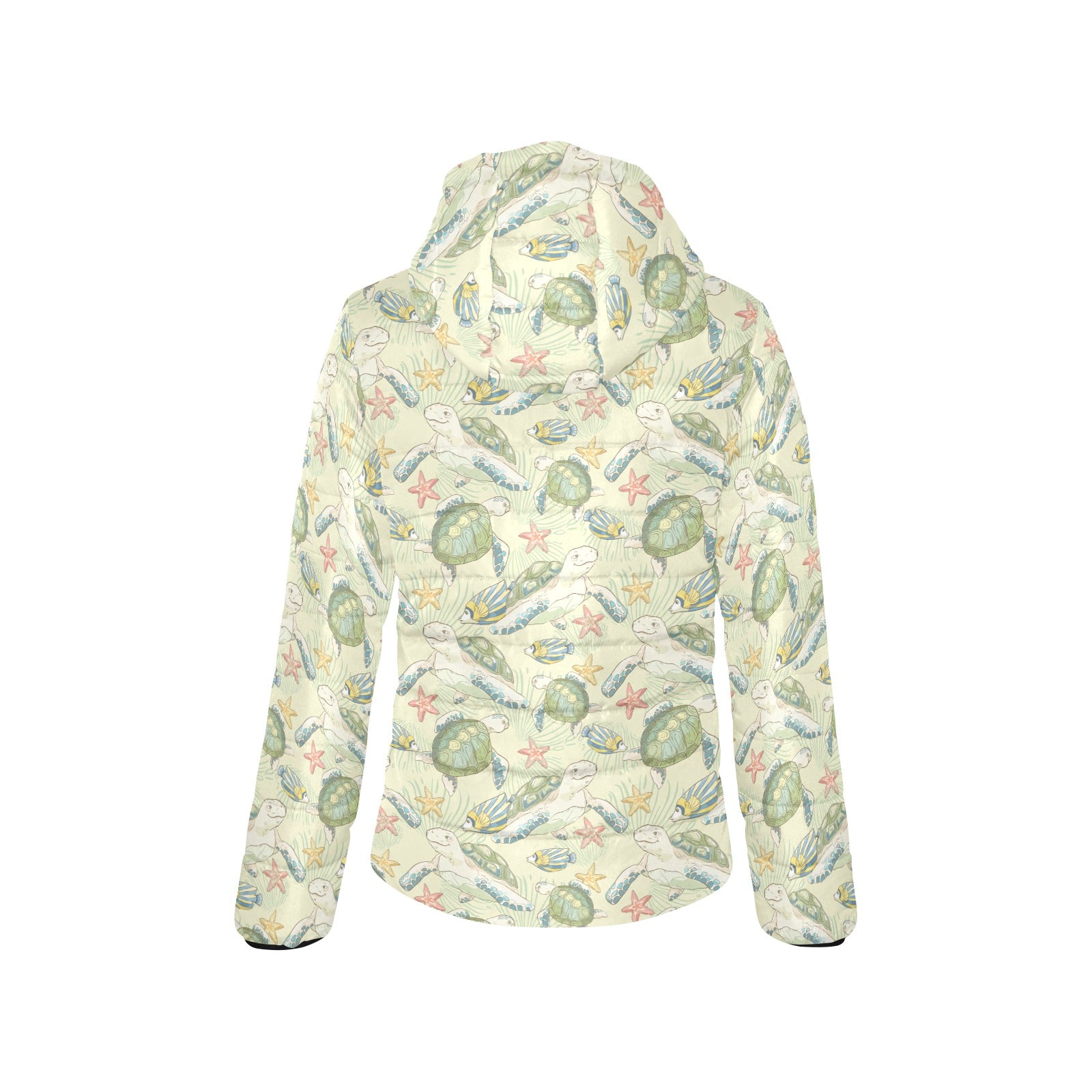 Hand drawn sea turtle fish pattern Women's Padded Hooded Jacket
