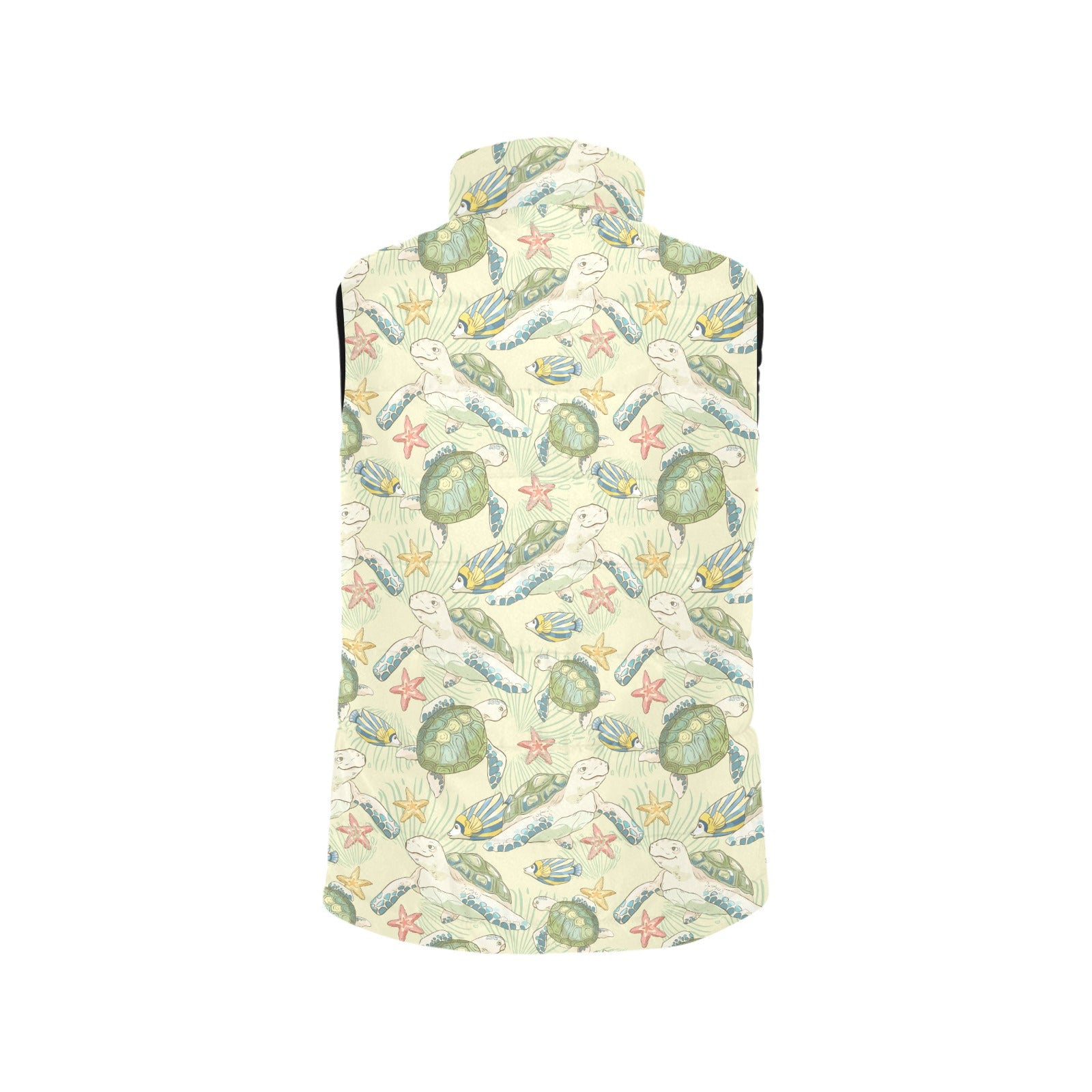 Hand drawn sea turtle fish pattern Women's Padded Vest