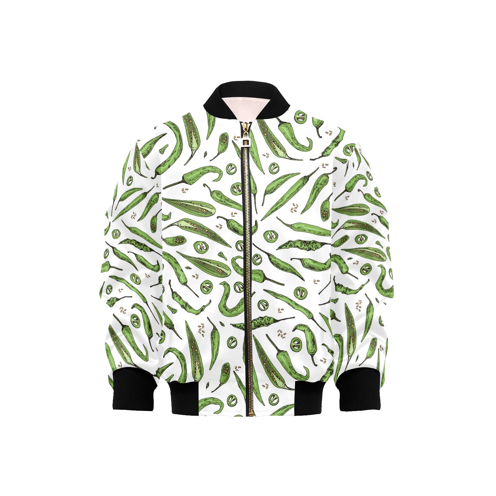 Hand drawn sketch style green Chili peppers patter Kids' Boys' Girls' Bomber Jacket