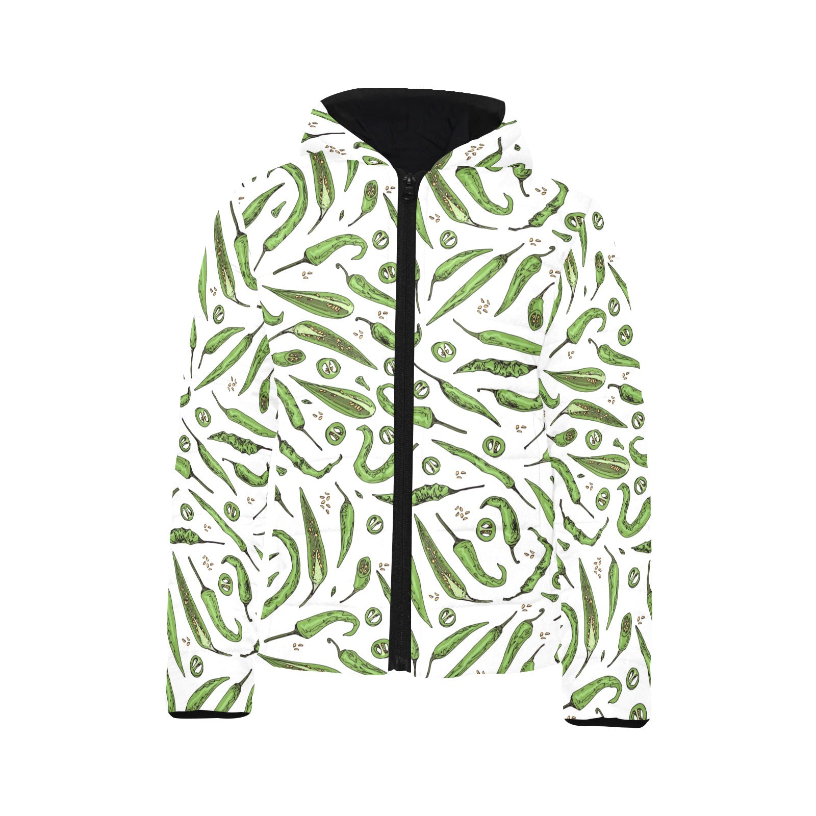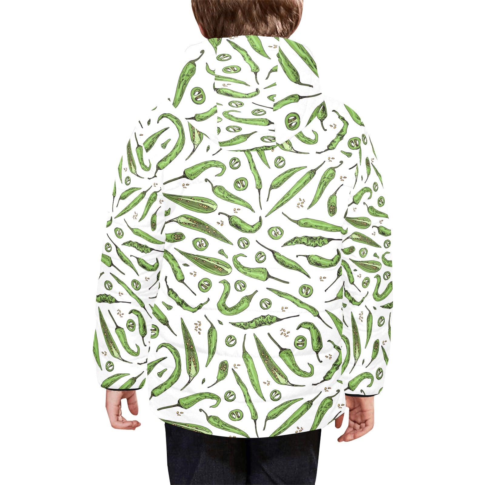 Hand drawn sketch style green Chili peppers patter Kids' Boys' Girls' Padded Hooded Jacket
