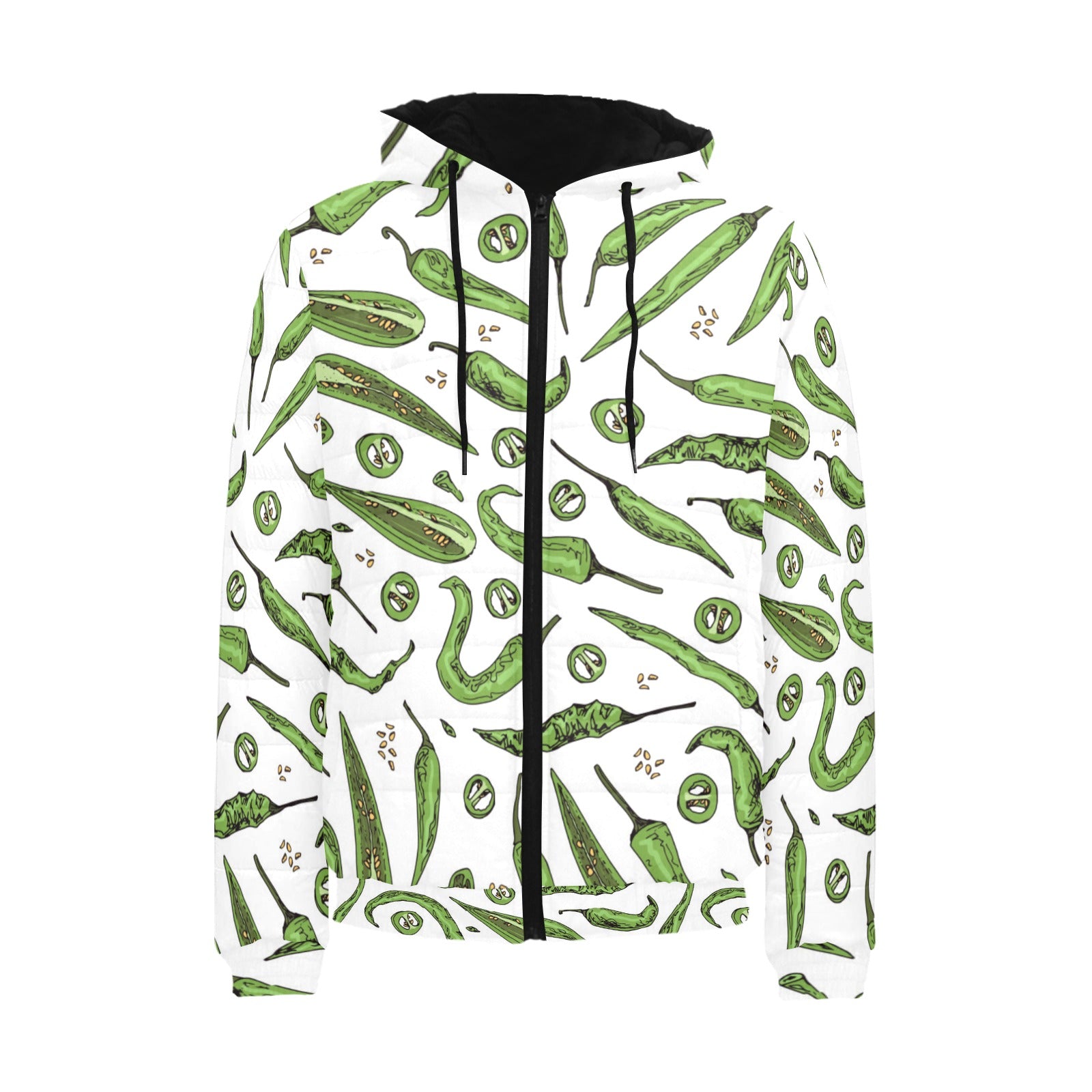Hand drawn sketch style green Chili peppers patter Men's Padded Hooded Jacket