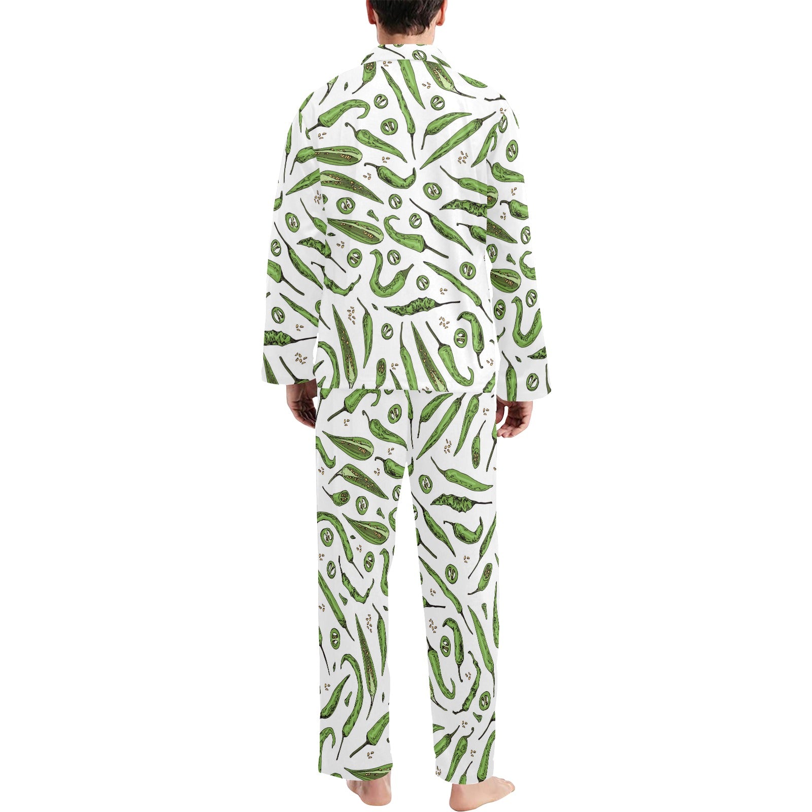 Hand drawn sketch style green Chili peppers patter Men's Long Pajama Set