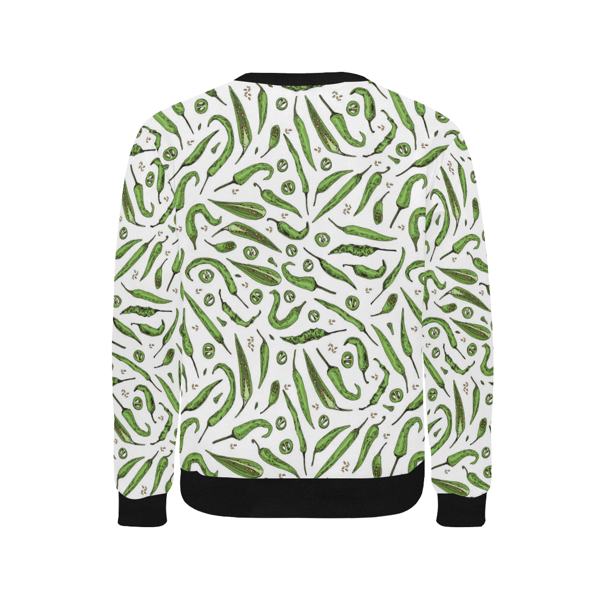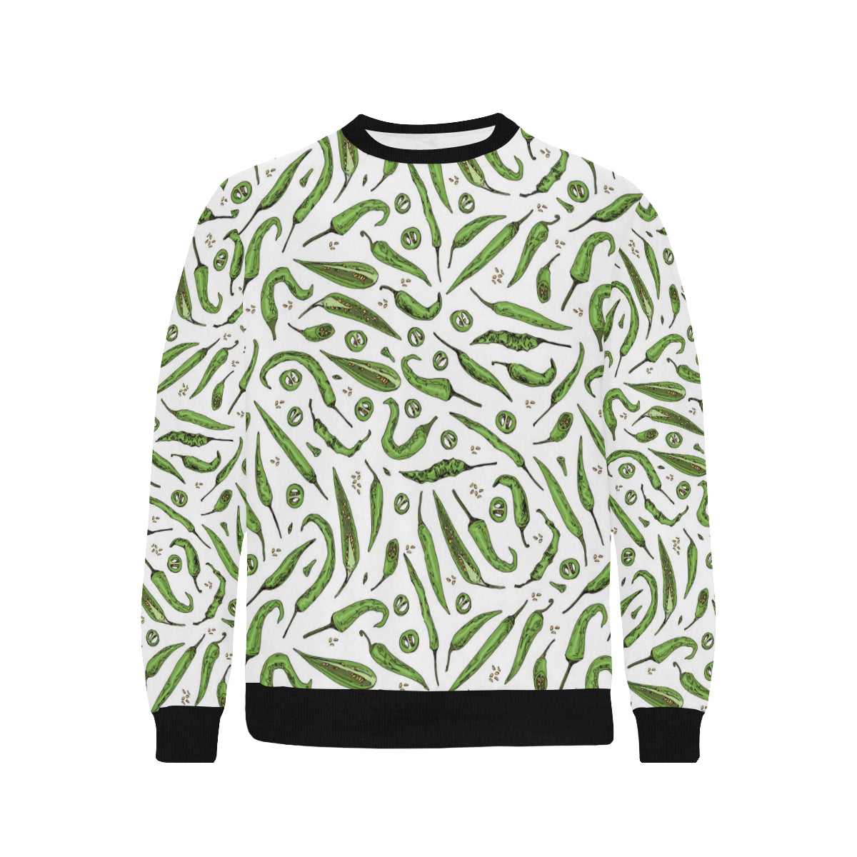 Hand drawn sketch style green Chili peppers patter Men's Crew Neck Sweatshirt is a uniqued design and limited item. It made to order, hand printed, and sewn with love in our factory.