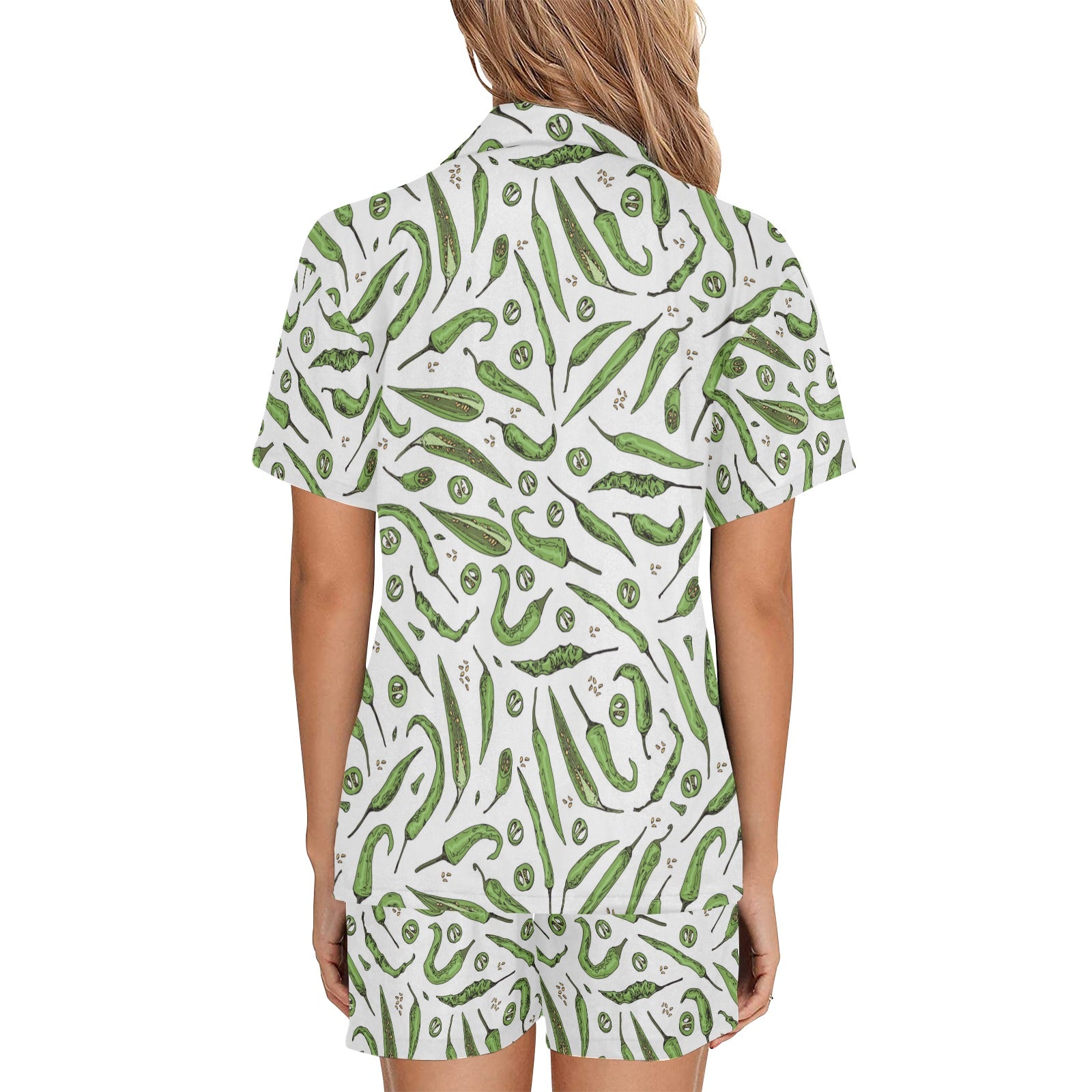 Hand drawn sketch style green Chili peppers patter Women's V-Neck Short Pajama Set