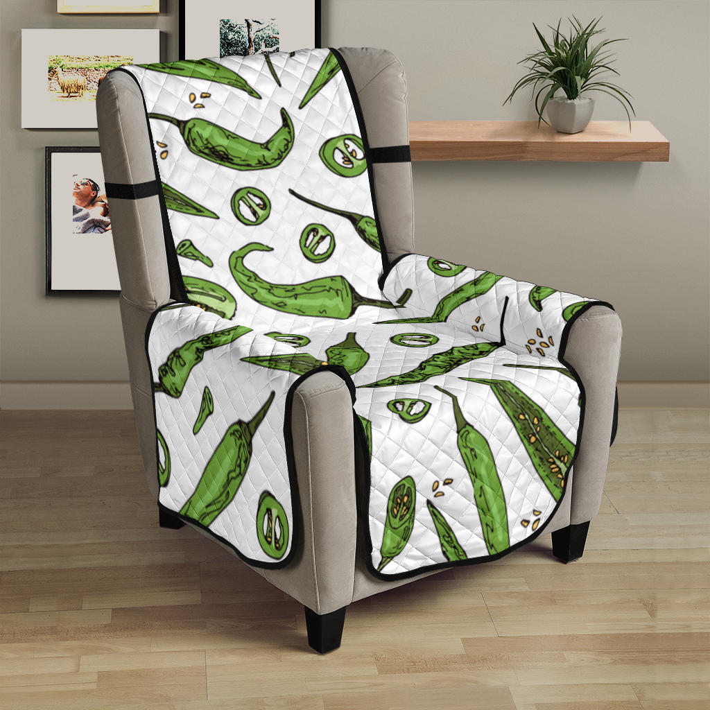 Hand drawn sketch style green Chili peppers pattern Chair Cover Protector