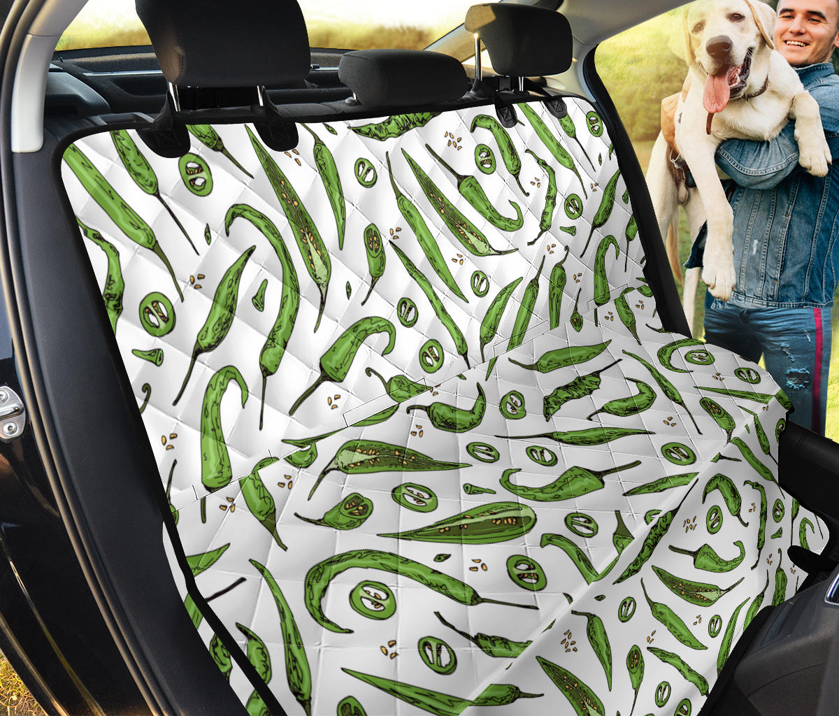 Hand Drawn Sketch Style Green Chili Peppers Pattern Dog Car Seat Covers