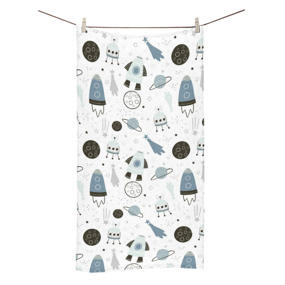 Hand drawn space elements space rocket star planet Bath Towel 30"x56" is a uniqued design and limited item. It made to order, hand printed, and sewn with love in our factory.