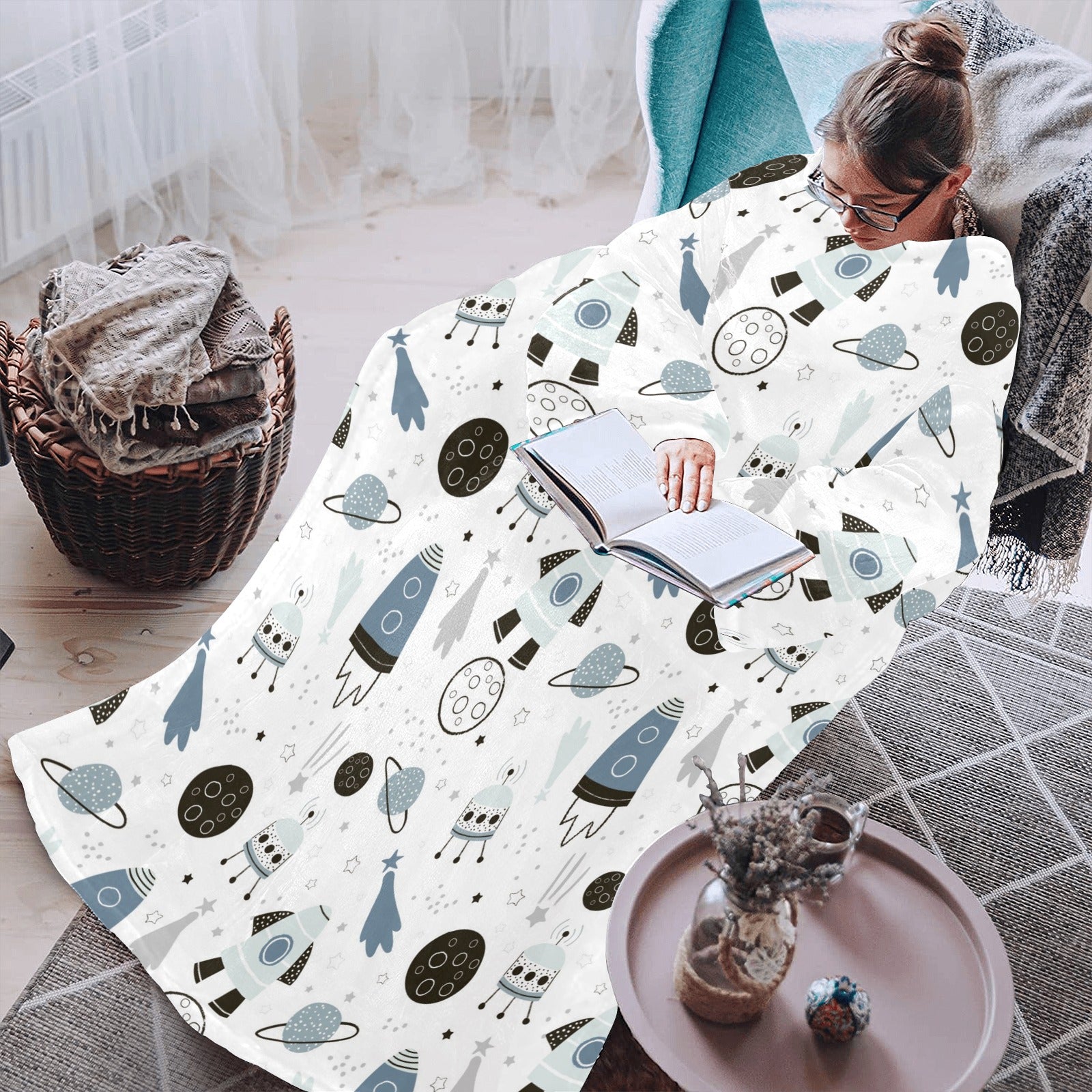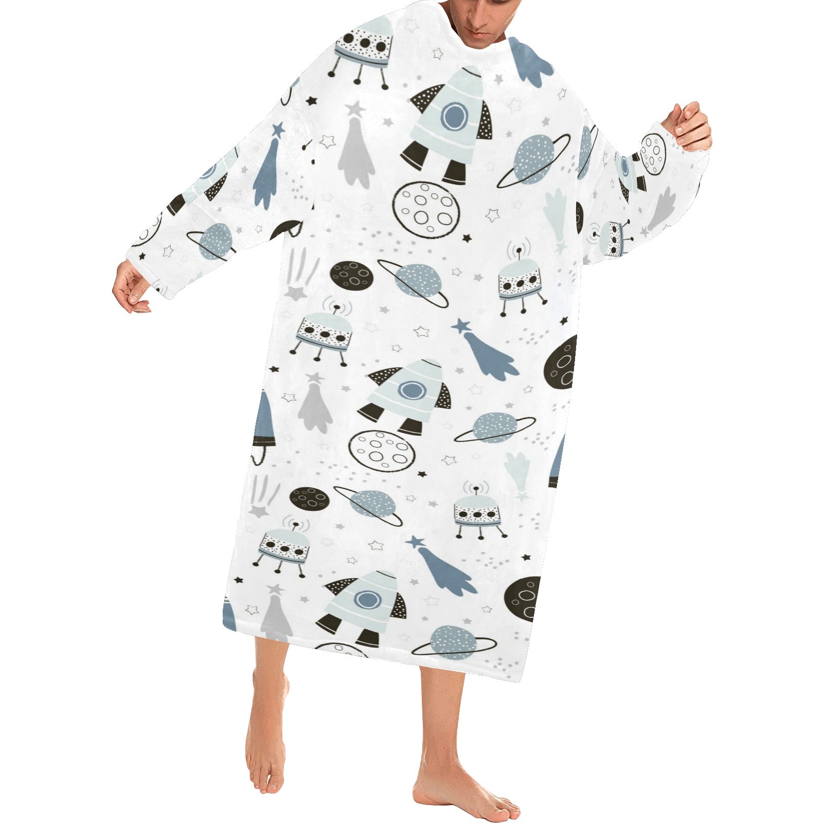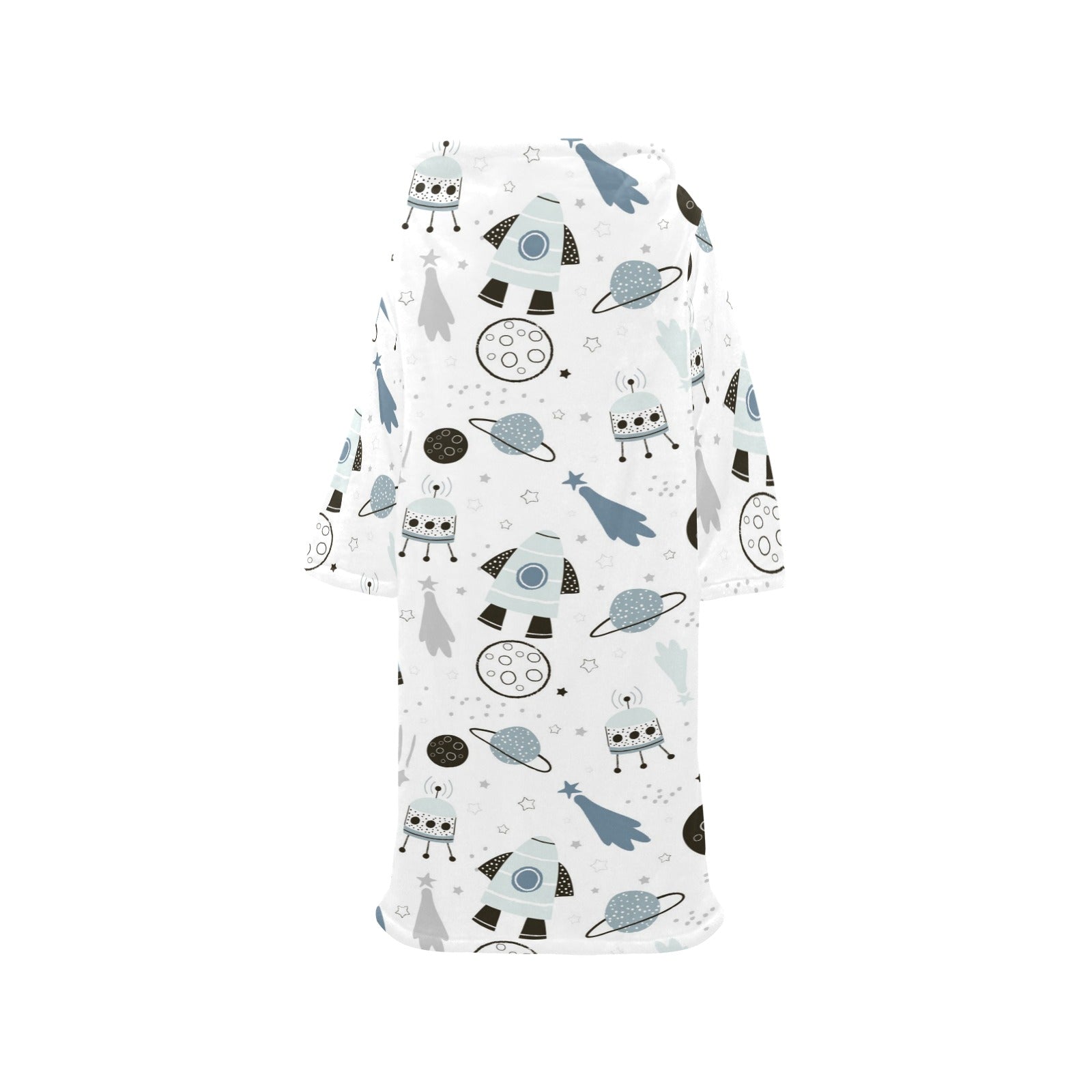 Hand drawn space elements space rocket star planet Blanket Robe with Sleeves