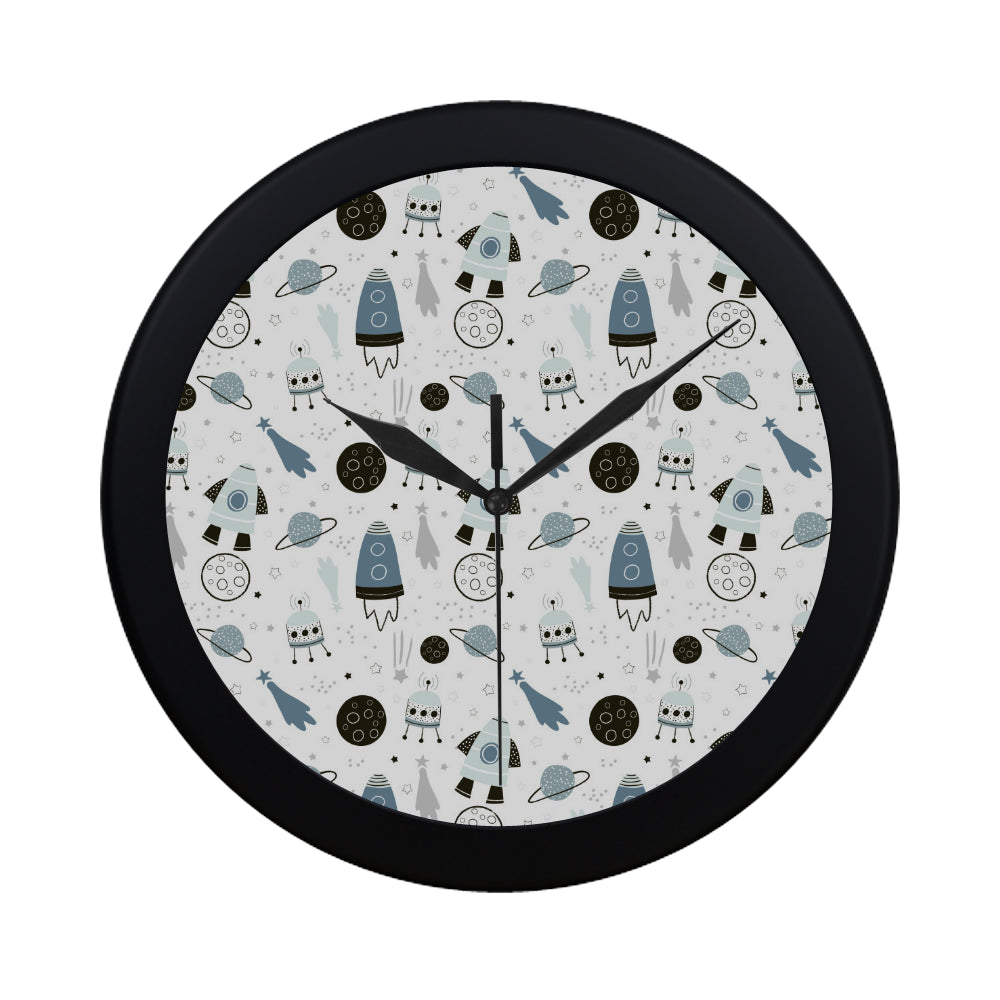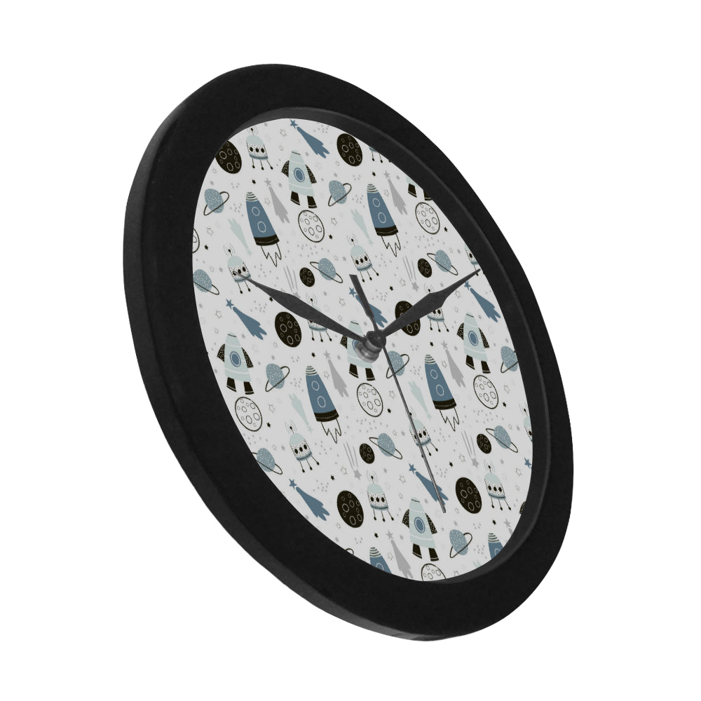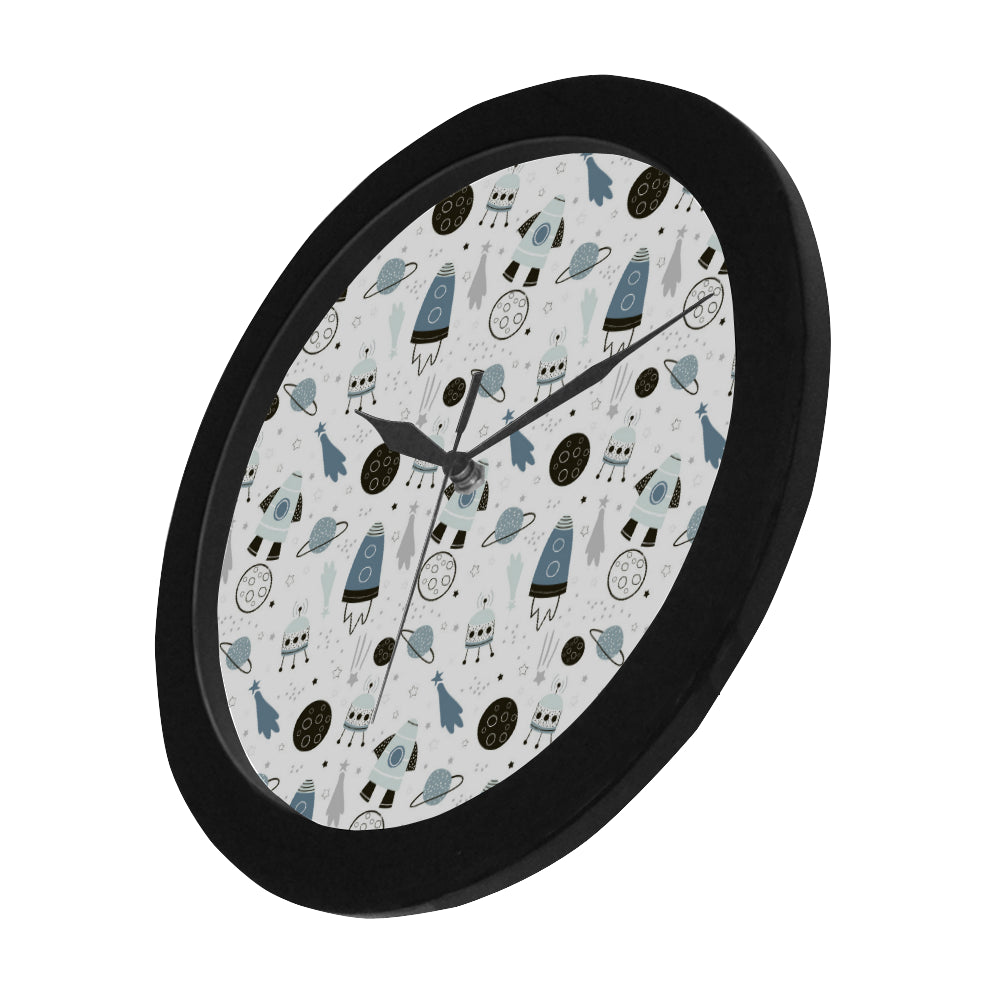 Hand drawn space elements space rocket star planet Elegant Black Wall Clock